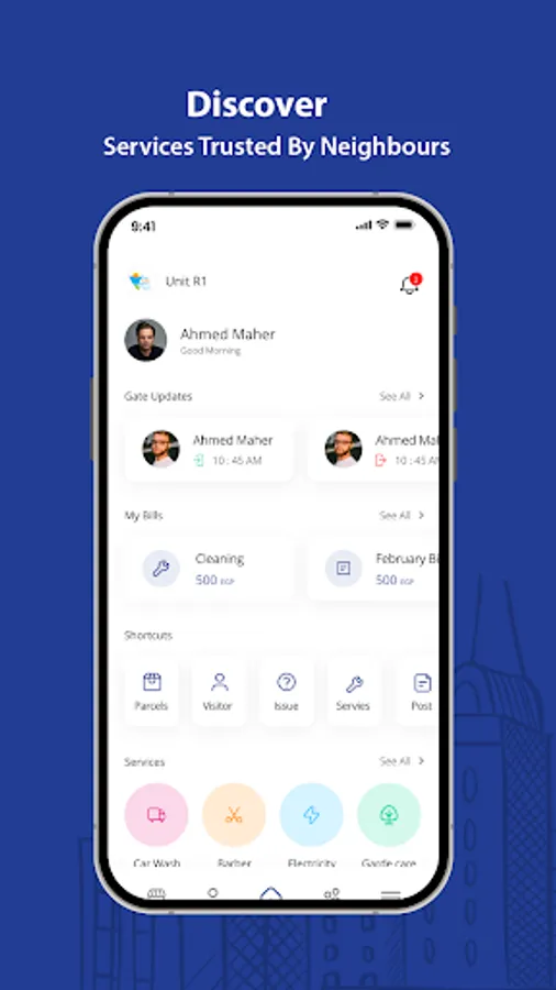 1- Services: where the owner can request the service he desires from among maintenance, cleaning, services, etc.