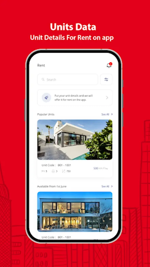 5- Rent: The applicant can view his unit for rent and also review the units offered for rent within the project