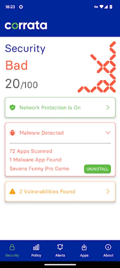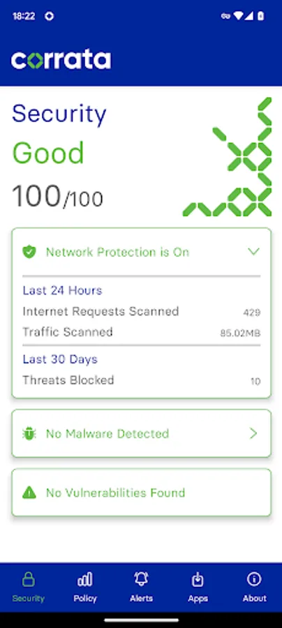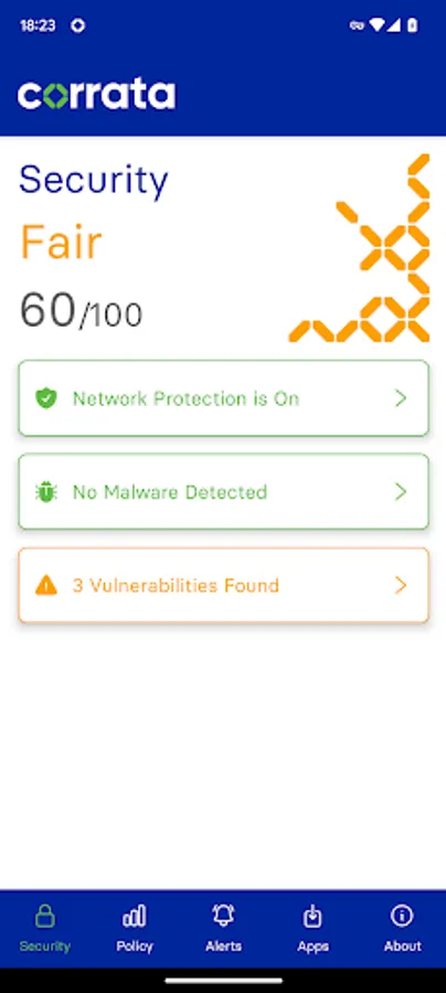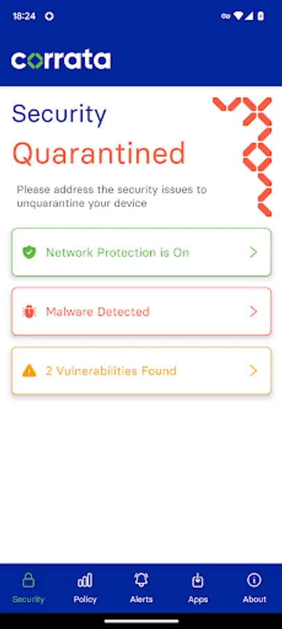 To use this app your organization is required to have licensed Corrata Mobile Security. Contact your IT Administrator for further information.