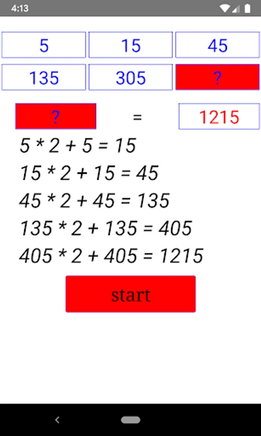 The application will automatically generate a sequence of numbers with a random algorithm of 6 numbers and hide any number. You will find the rule of the number and enter that number in the mark? The game has 3 easy, medium and hard levels. For each level is a period of time you have to find the crossword, the time you do not find you will lose. You answer correctly the system of adding points for you and automatically generate a new rule.