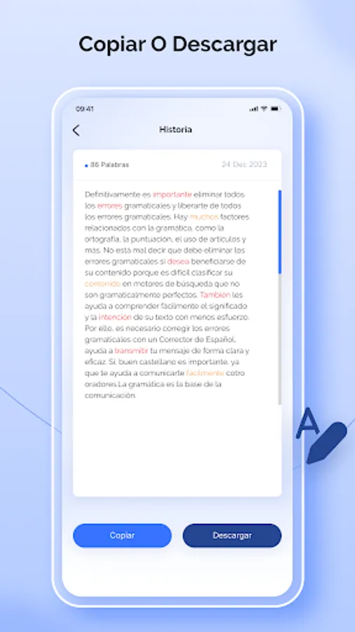 Easily find and correct Spanish grammatical errors in your content with the help of our Corrector Castellano Android app. Our application is free to use and does not require any kind of subscription or prior registration.