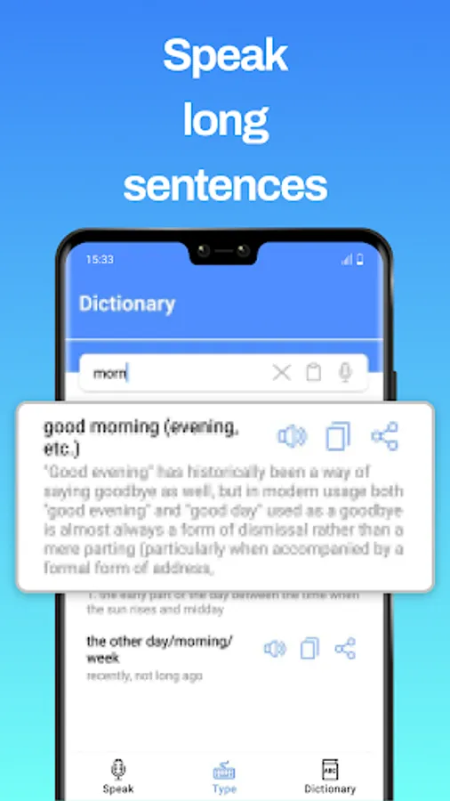 Just speak the English words and find the grammatical corrected sentences with improved spelling mistakes and punctuations. This spelling helper app will help you improve your vocabulary skills and increase the lexicon of the English language.