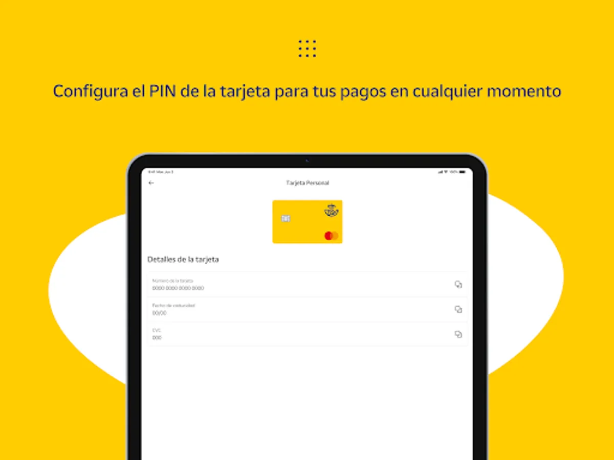 You can control your expenses, domicile your receipts and make transfers without commissions. You can also make payments abroad, you have more than 37 million establishments to use your virtual card.