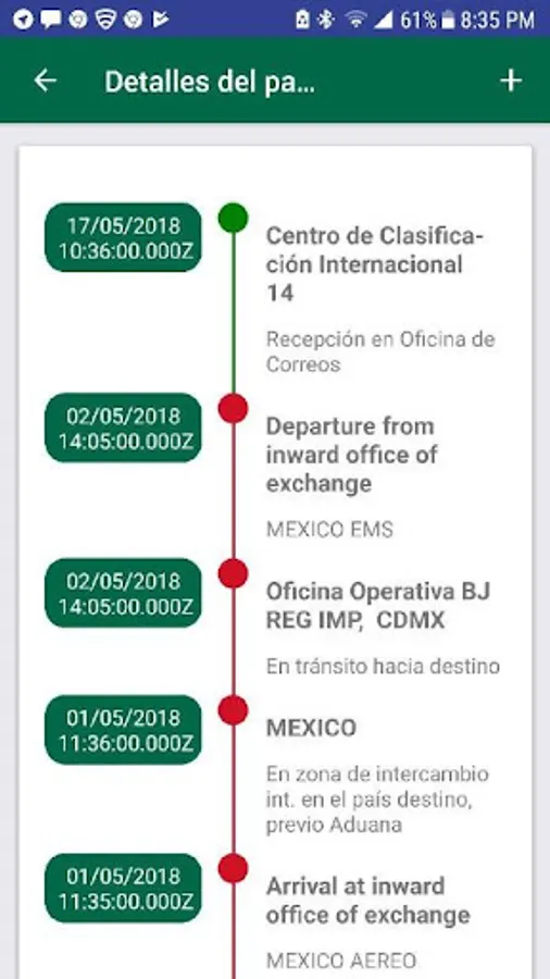 - Indicators to know what packages are new records and records of a particular package are new: When updating records messages are added in red, which indicates that packages have new records and records are new, all this after performing an upgrade to a package specific or an update on all packages on your list that are not yet delivered, all through the information available on the website of Correos de Mexico or Mexpost through your guide or tracking number.