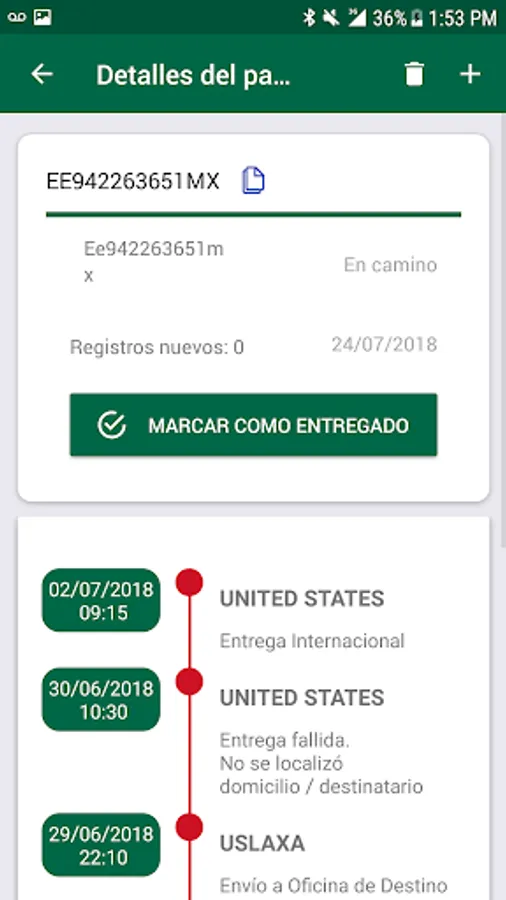 - Updating the status of your package with just one touch: When you touch one of your automatically packages all new information available in Correos de Mexico or Mexpost is updated.