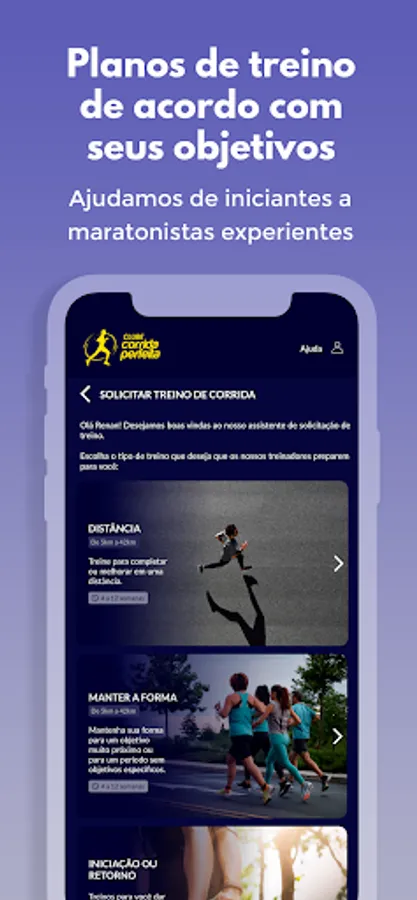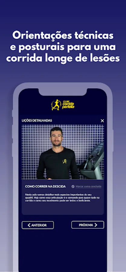 If you want to run away from pain and injuries and with more comfort, want to improve your performance or want to start running safely, join our online training club. Receive guidance from the largest running training methodology in Brazil. Go to corriperfeita.com/clube and guarantee access to the method and the App.