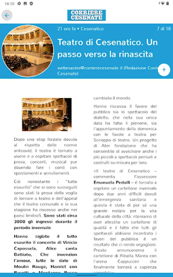 This App offers subscribers the Corriere Cesenate the ability to browse in the digital edition of the current week, with access to articles, videos, photo gallery over to the archive, the search system and the ability to share content on social networks themselves .