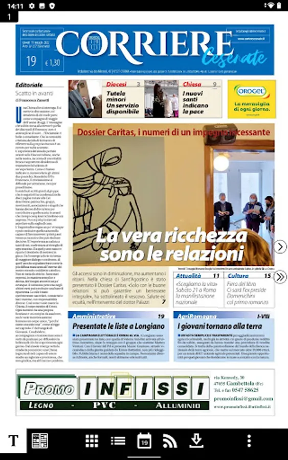 For over one hundred years, the Courier Cesenate tells the life of the diocese of Cesena-Sarsina with a global view. Want to talk to people with a popular language and direct. News, current affairs, the Church's life, culture, opinions, solidarity, sport, every Thursday by subscription or at newsstands. Information on land suitable for family.