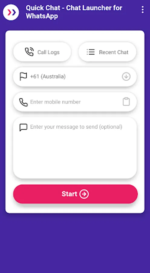 The Quick Chat performs Message to unsaved whatsapp number, change country and start conversation, manage recent chat history etc..