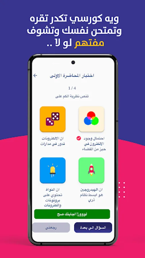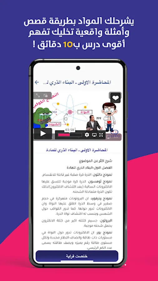 Course lessons are explained by the best Iraqi professors, who are trained on the best modern and advanced Finnish education methods, so that the lessons are explained in an easy and fast way and do not take you a long time, and the application is the best solution for those who study on the night of the exam and do not know where to start. The most powerful lesson in my course is 10 minutes and success is guaranteed