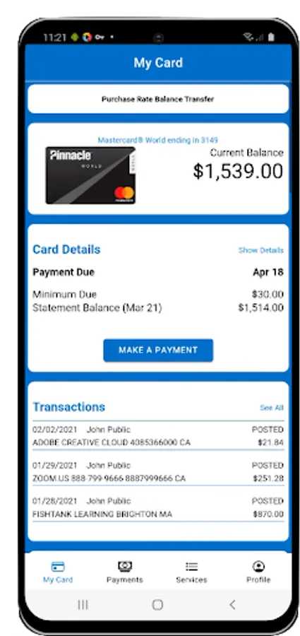 -View your pending and posted transactions or open a PDF of your billing statement right from the app.