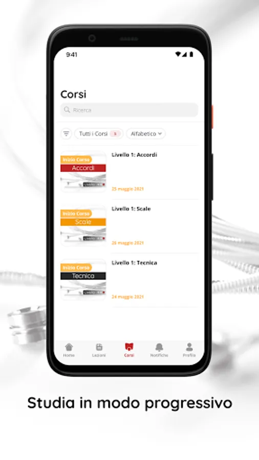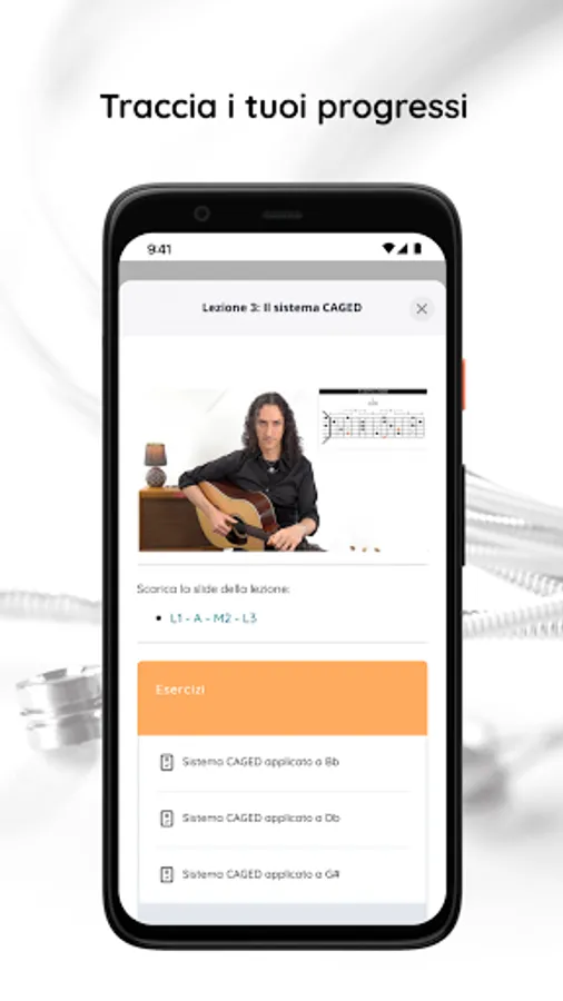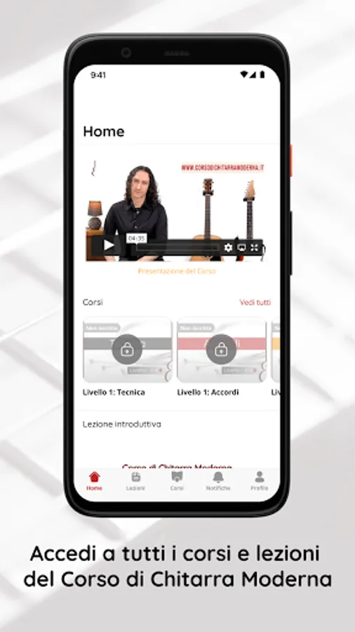 The modern guitar course is ideal for those who want to deepen the fundamentals of the guitar, from the basic elements to the more advanced topics of technique, chords, scales and arpeggios, with a progressive study organized into Sections, Modules and Lessons. The course offers an essential technical baggage to deal with any musical style in an aware way.