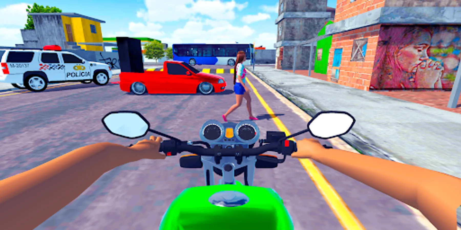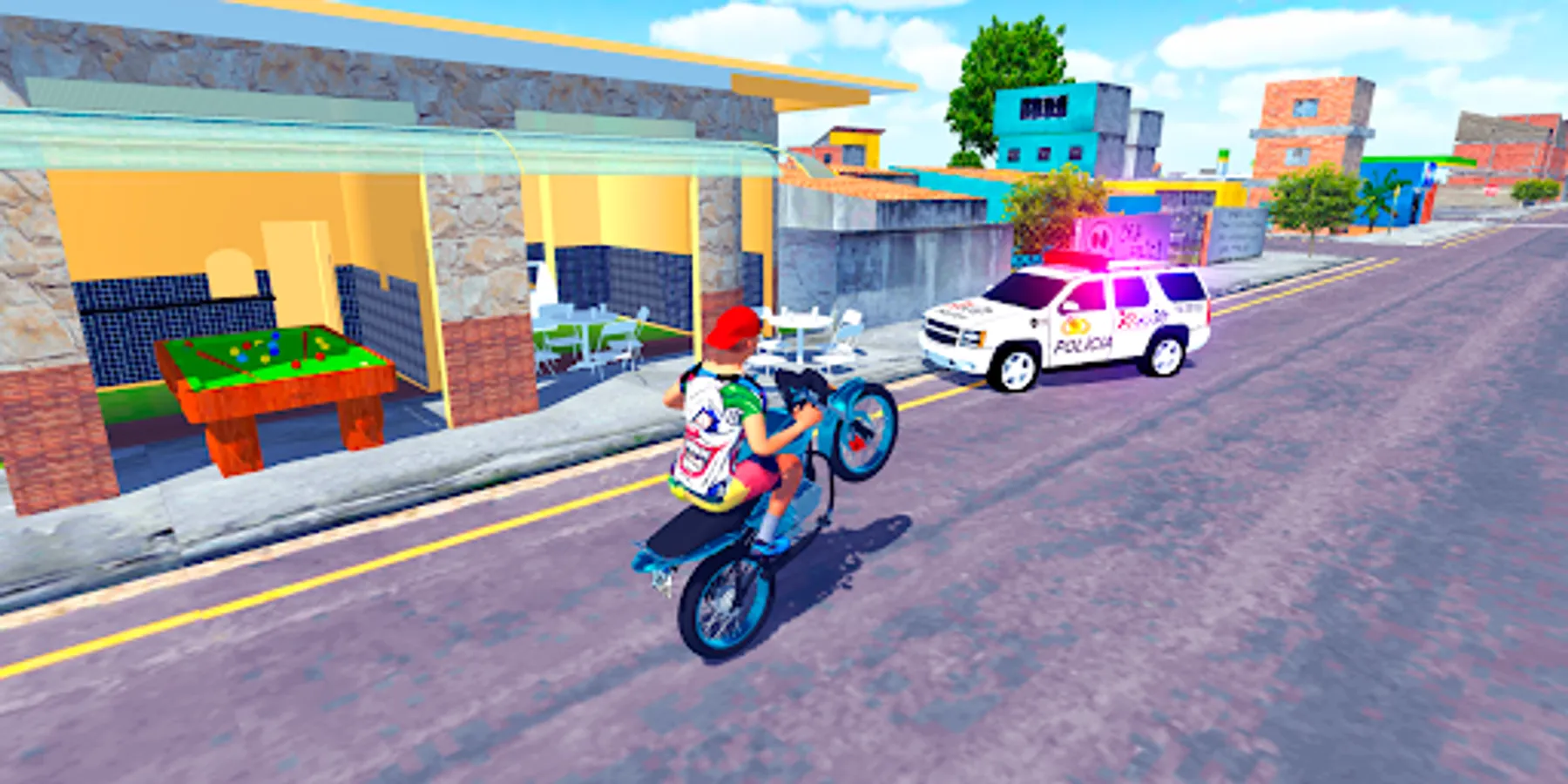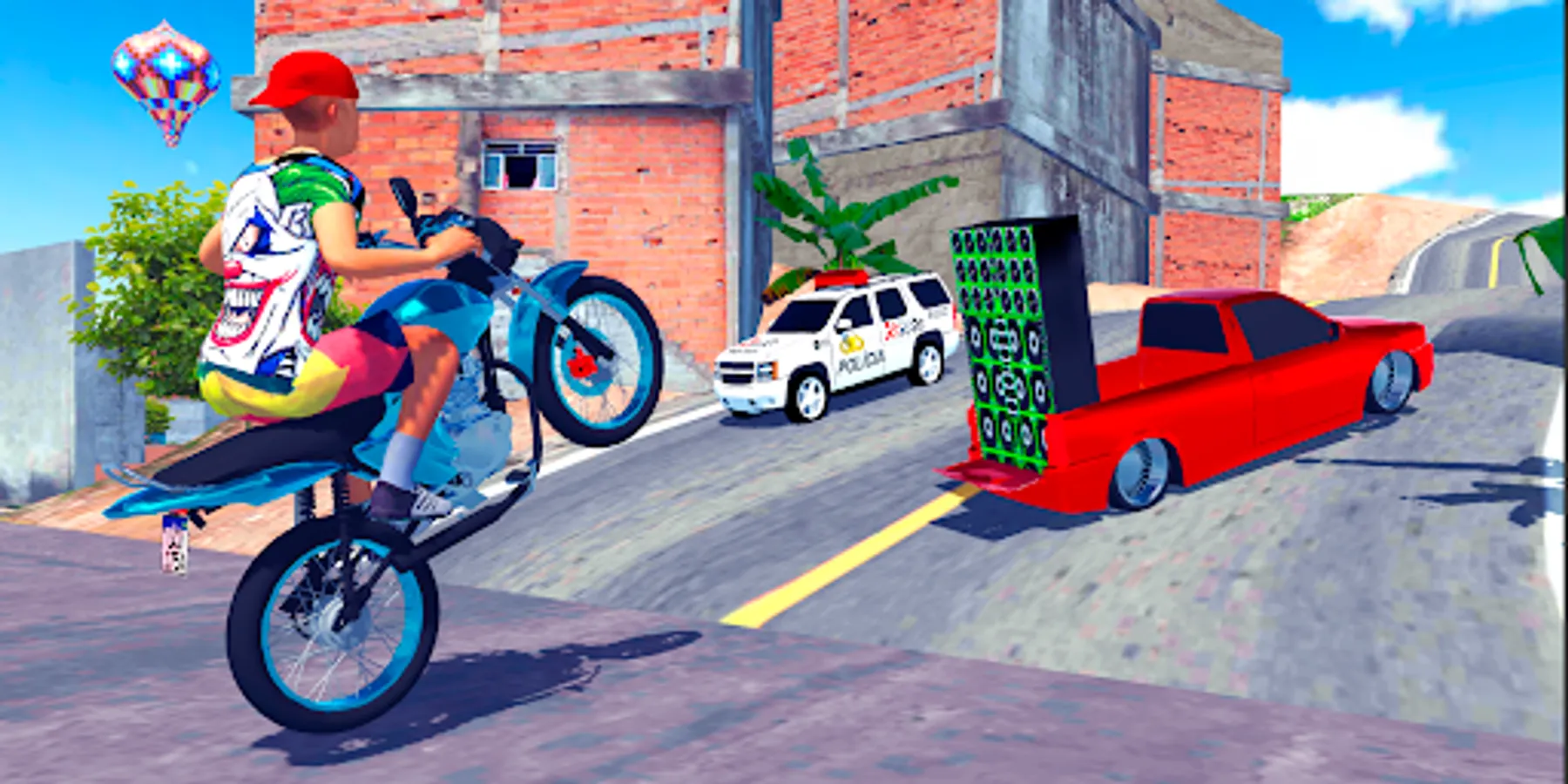 The game has 3 cameras, a third-person camera, a side camera to be able to observe the scenario of the favelas of Brazil and a first-person camera for you to ride a motorcycle and simulate a motorcycle vlog.