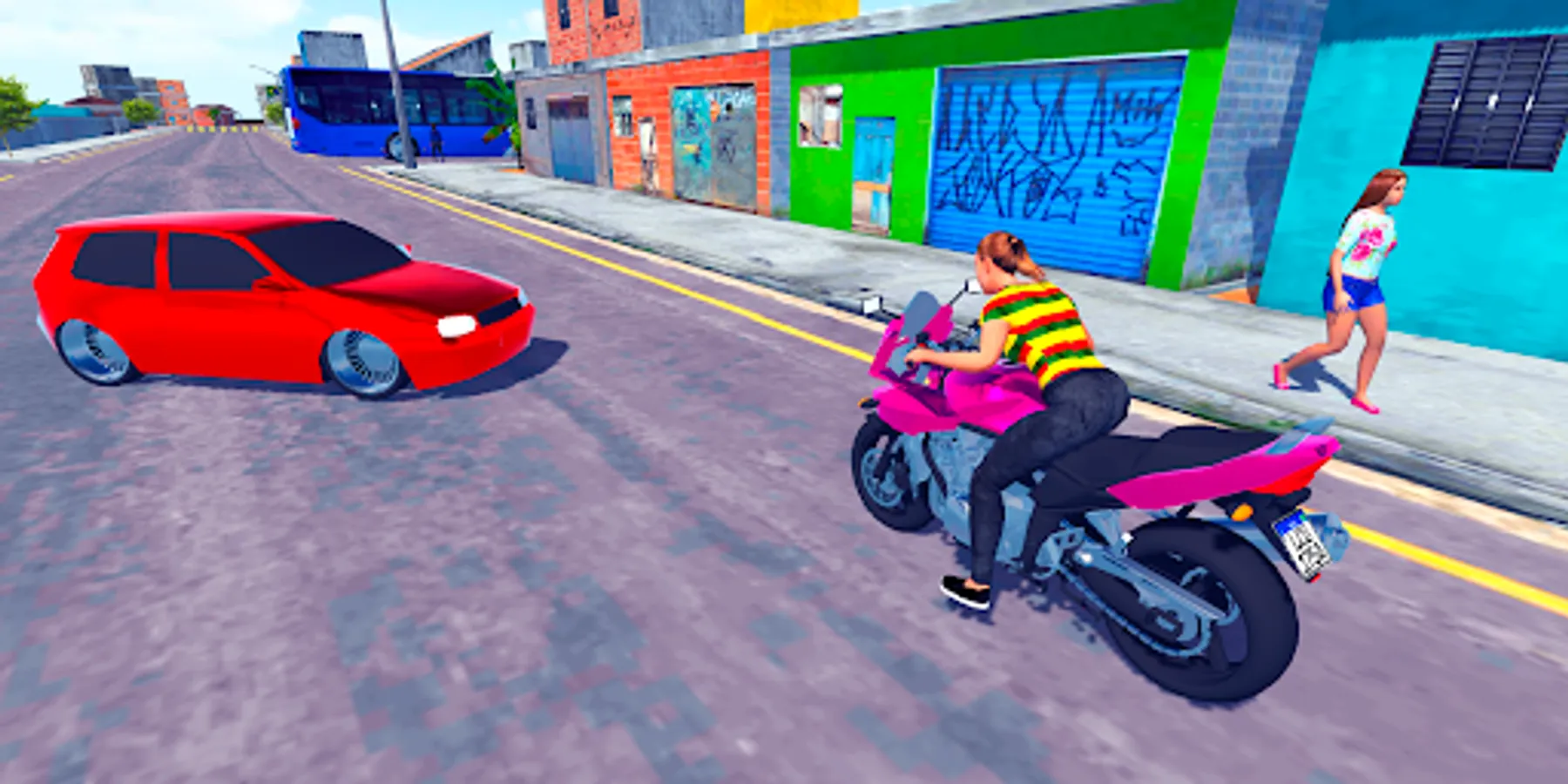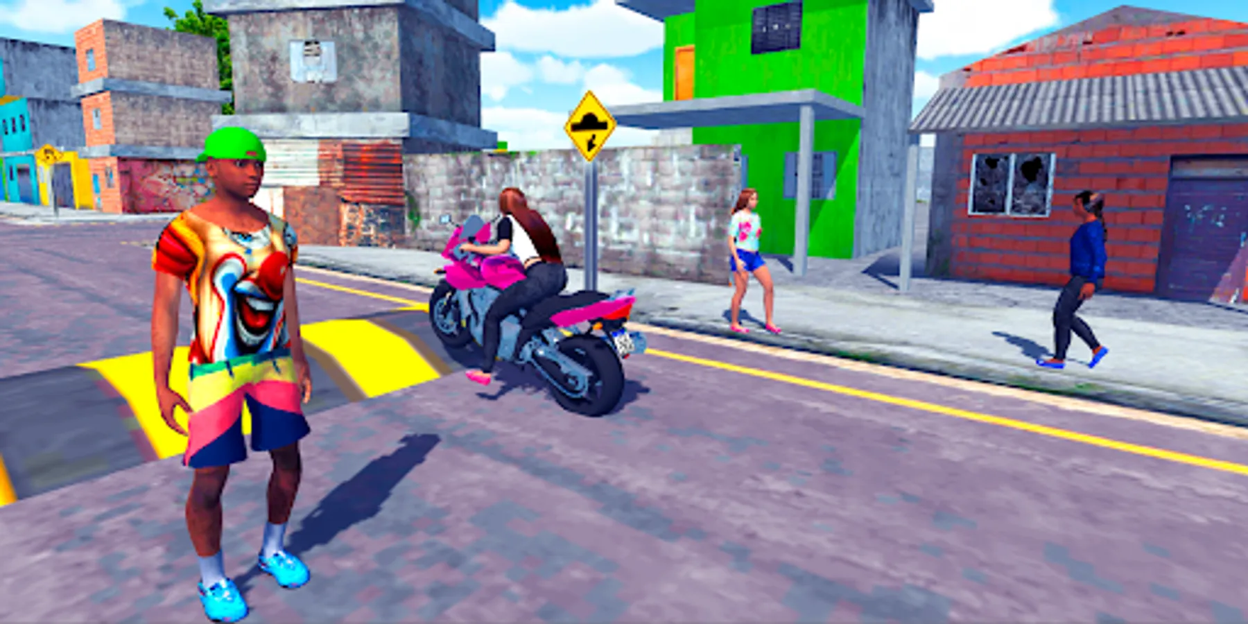 When you enter the smaller streets of the favela in the game you will find funk dances with bangs and people dancing, take your motorcycle with care and attention not to fall, turn and grade your bike,