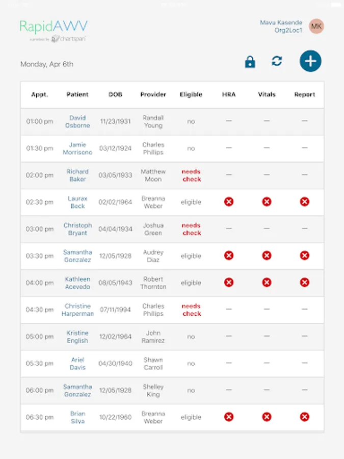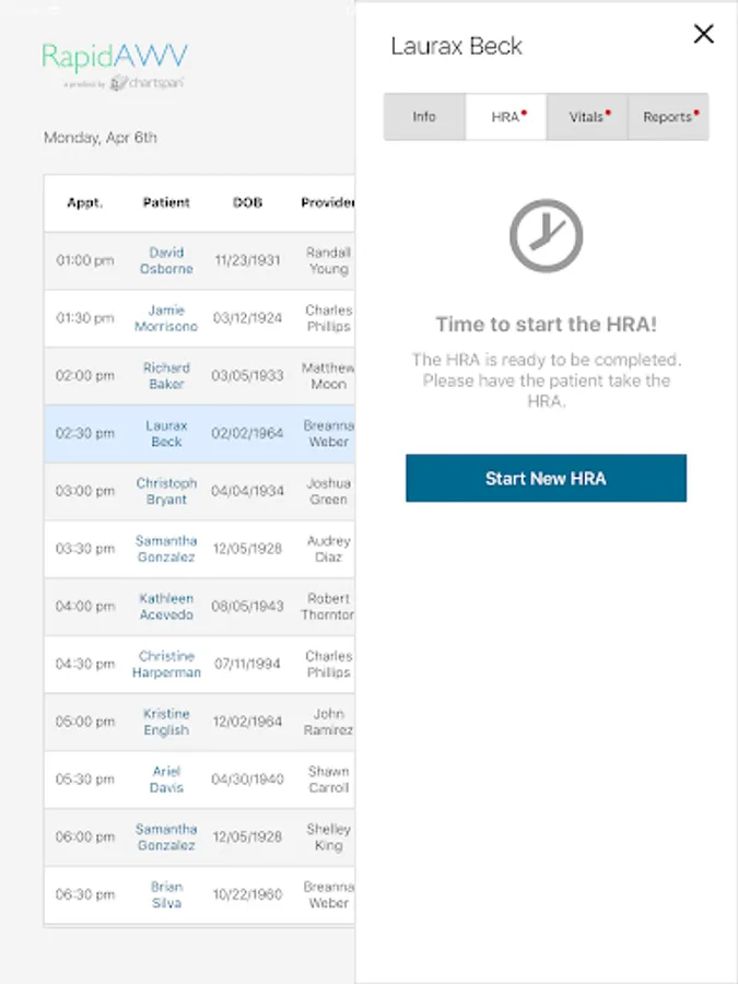 RapidAWV™ makes conducting Annual Wellness Visits (AWV)s for your Medicare patients easy. Experience real-time eligibility check so you never miss a patient (or opportunity for revenue) again! RapidAWV™ offers a user-friendly interface for you and your senior patients to work together towards a proactive healthcare plan. This revenue-producing solution is flexible so you can conduct your AWVs however you need to - whether that means remotely or in the waiting room.