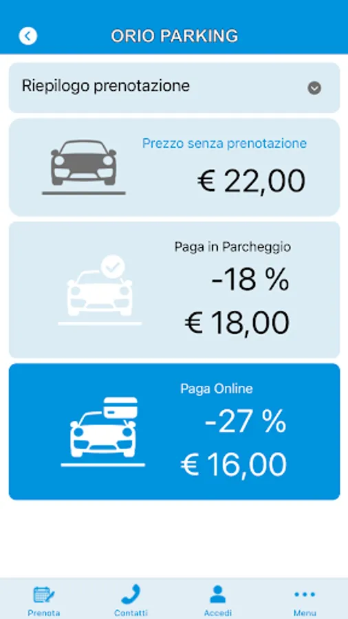 The APP allows you to make a reservation online with no commitment, payment ONLY at the time of the car delivery.