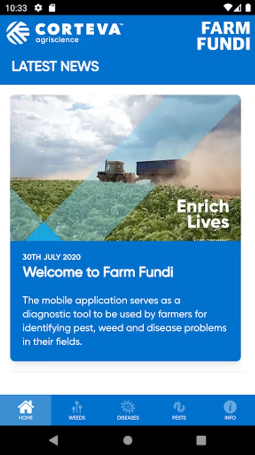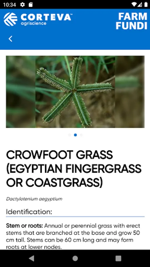 The mobile application will serve as a self disgnostic tool to crop growers to improve the health and success of their crops. It provides tips, photos and symptom descriptions of the problems often encountered in a field with pests, diseases and weeds. It also gives guidance on how to avoid or control these problems in future with links to access specialist information on the Corteva™ Agriscience websites. It can be used as a field guide with online and offline functionality, making it a hands on tool during a field problem scouting. The app is multilingual to serve the most customers across African and Middle Eastern countries.