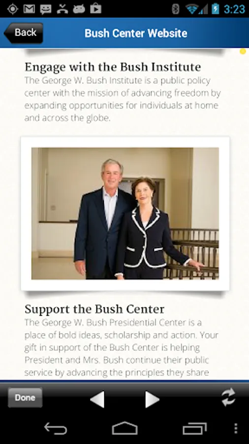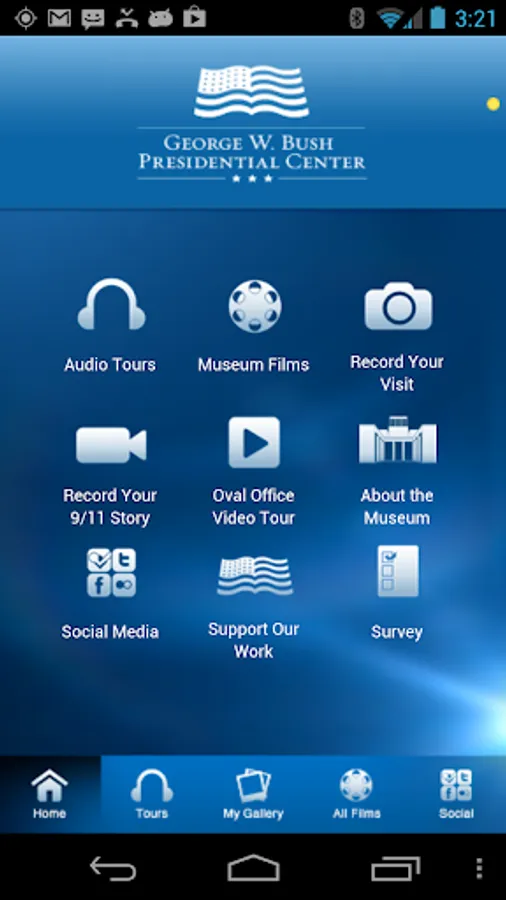 This application is designed to provide information about the George W. Bush Presidential Center’s exhibits and enhance your visit to the Museum.