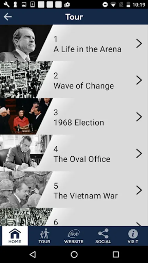 The Richard Nixon: Library Tour & Research app features a descriptive audio tour, and research resources. Learn about the life and political career of Richard Nixon through detailed descriptions, audio, and images that will enhance your experience as you tour each gallery.