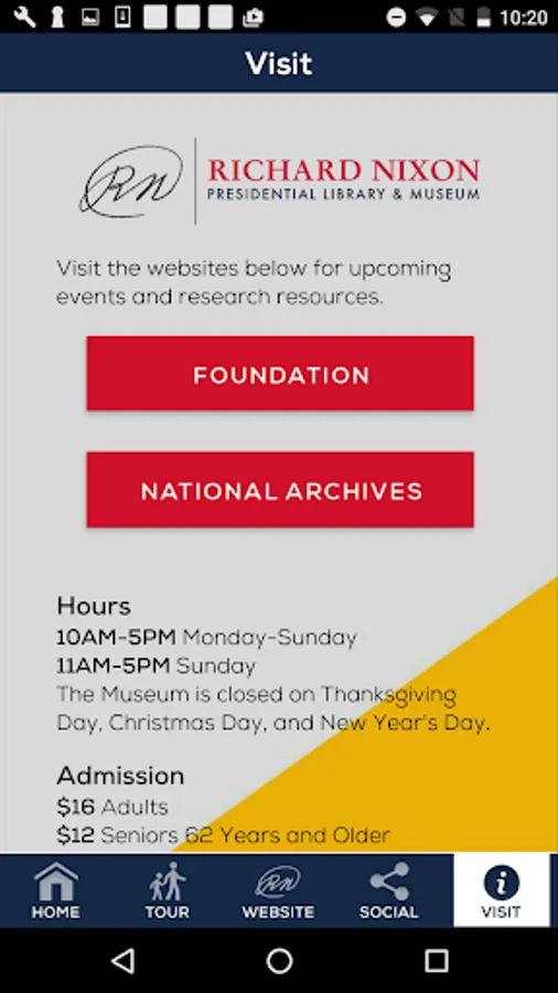 You can share your experience at the Richard Nixon Presidential Library and Museum using social media platforms that are accessible within the app. It is a perfect educational companion for those who would like to take a deeper dive into Richard Nixon’s life and career.