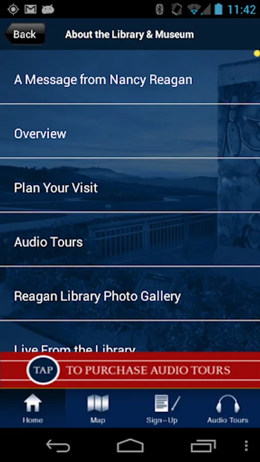Outside the Reagan Library, the App features: