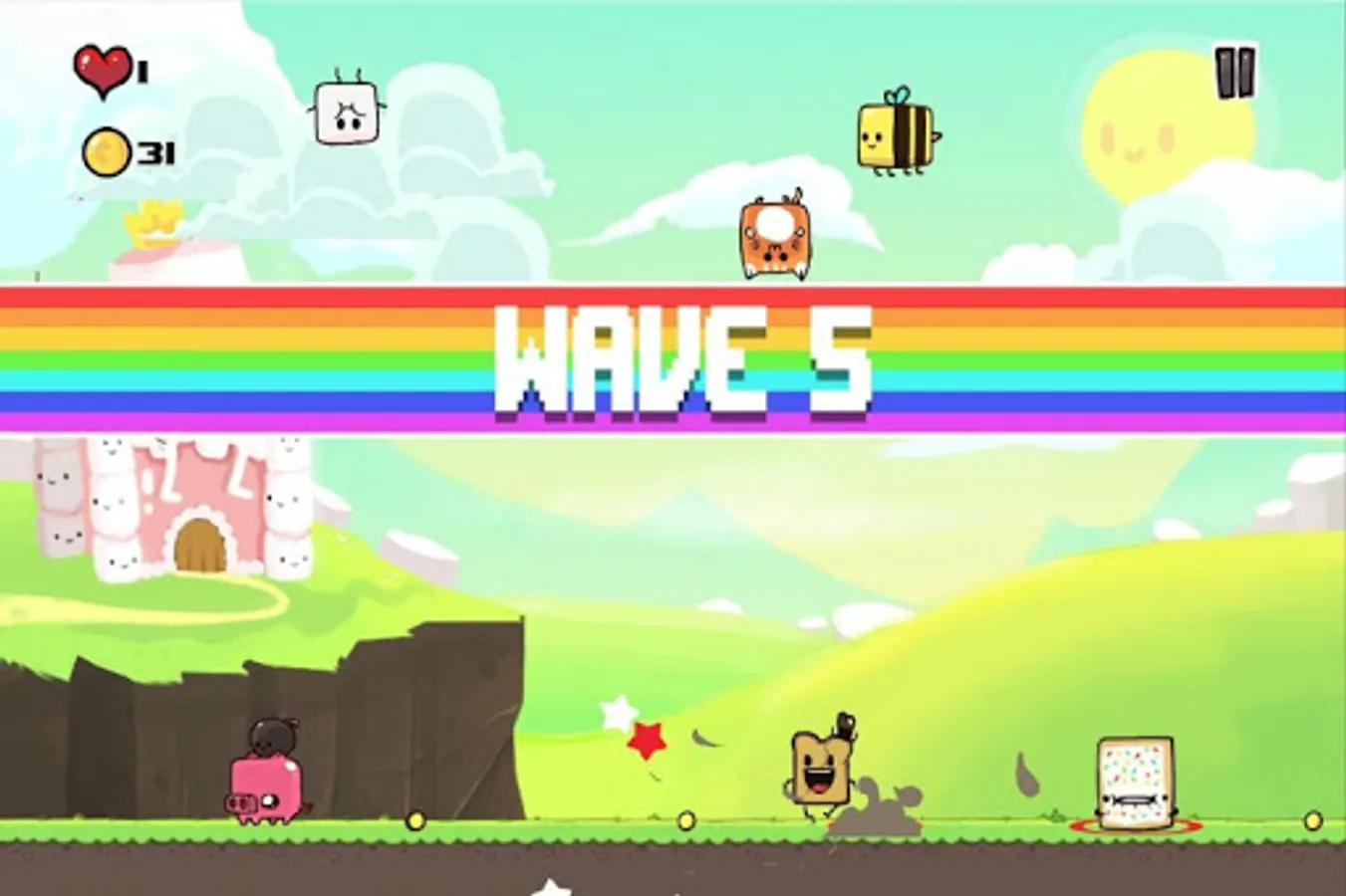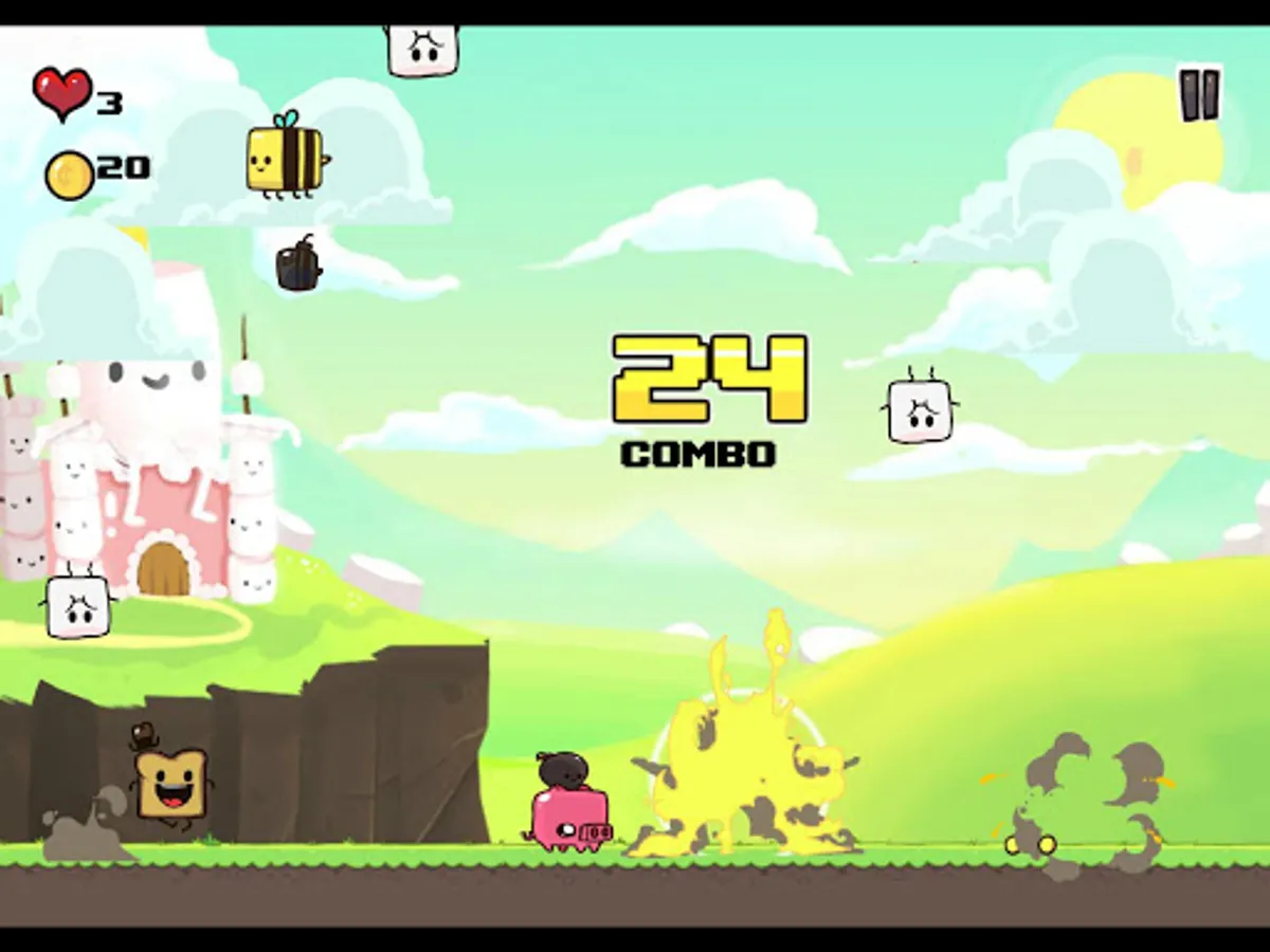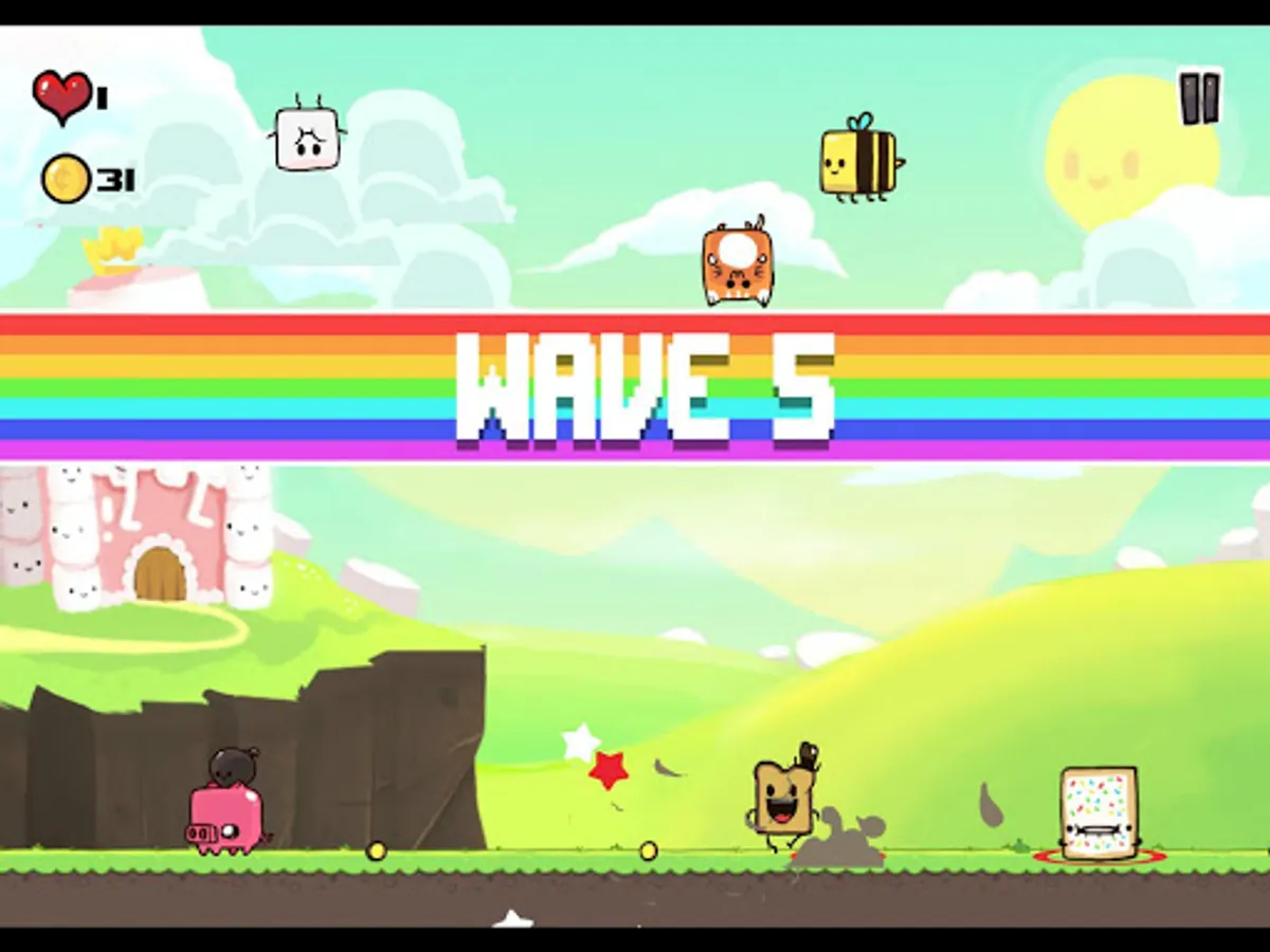 Super Marshmallow Kingdom is one toasts crazy battle against the evil forces of marshmallows, cats, tarts, pigs and more! Sent from king marshmallow who is upset after you ate his muffin. With explosions galore dodge your way through addictive 10 action arcade packed levels while upgrading your crumby abilities.