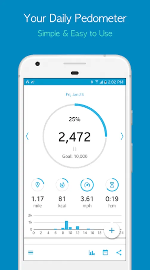 With easy to read charts and history logs, monitor your steps, calories burned, distance, and time. As your best walking buddy, Accupedo will motivate you to walk more! Set up your daily goal and step towards a healthier you with Accupedo pedometer.