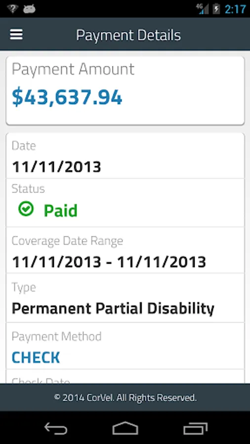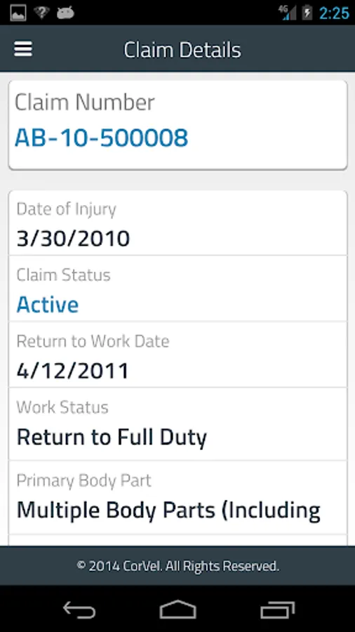 CorVel's My Care App provides you with instant access to information about your workers' compensation claim. You can access payment information, pharmacy cards, claim details, medical appointments, and contact information for your claims adjuster and case manager. The app also provides mobile access to sign up for direct deposit.