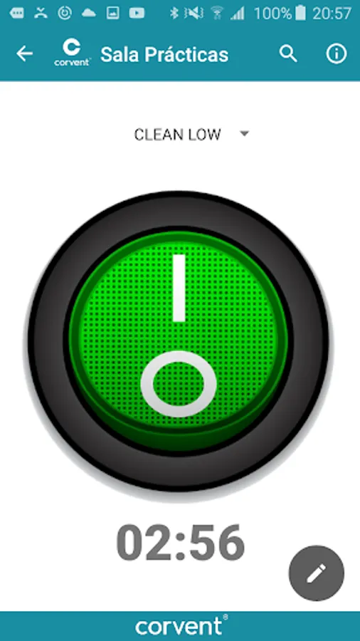 SanitBeam auto on / off app. Mechanism with three on and off times. The Clean Low (3 minutes), Clean Medium (6 minutes) and the Clean High (9 minutes).