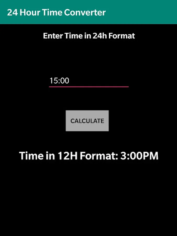 Have you ever needed to convert from 12 hour time to 24 hour time but didn't know how? Well this app is for you! Just enter the current time and let the app do all to work behind the scenes for you! It's super easy to use as well as user friendly!