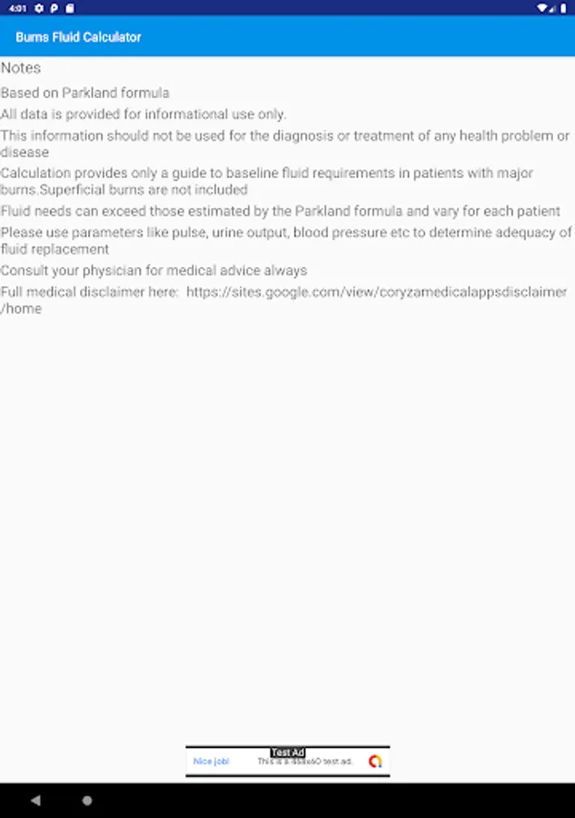 Based on Parkland's formula, this app allows for fast calculation of IV fluid dosage in burns patients for first 24 hours. It gives an indication which must of course be correlated with the vital signs of the patient.Information given by the app is for educational purposes only and should not form the sole basis of treatment.Simple and quick to use for doctors.For more medical apps feel free to check our other products!