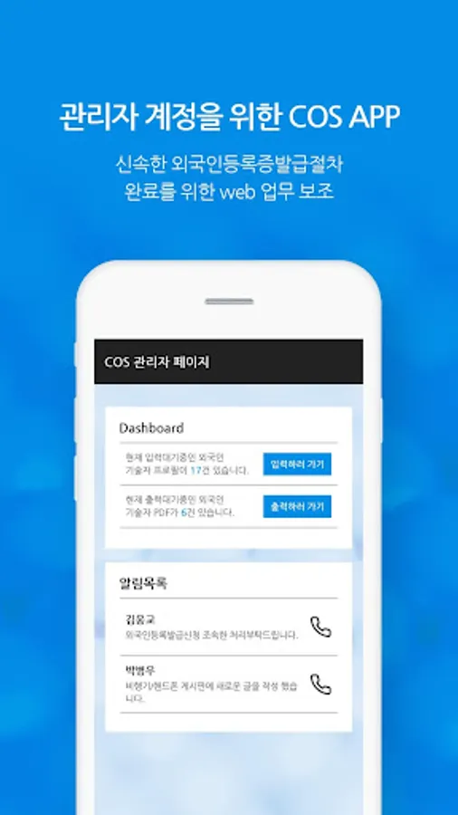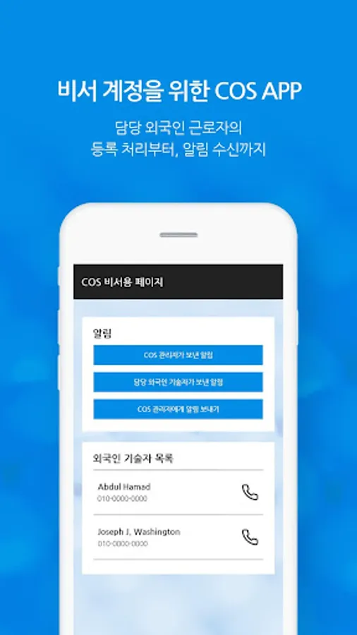 (2) In the case of a secretary, you can check the list of foreign workers you are responsible for, notifications from other users, and you can send a push to the administrator for document processing.