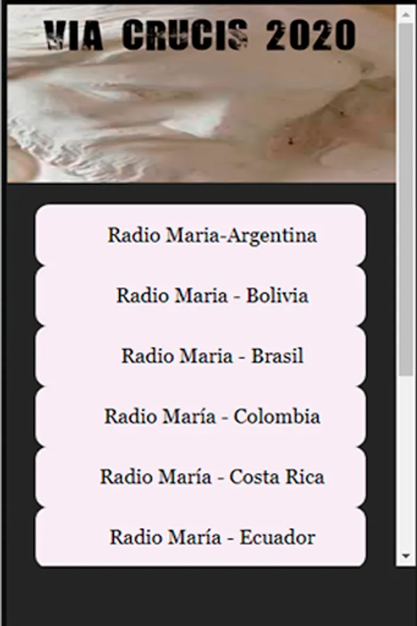 Via CRUCIS 2020 also contains radio stations from countries of America for you to use this application every day of the year.