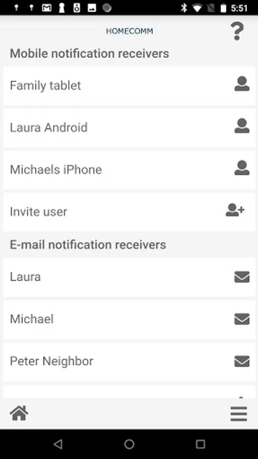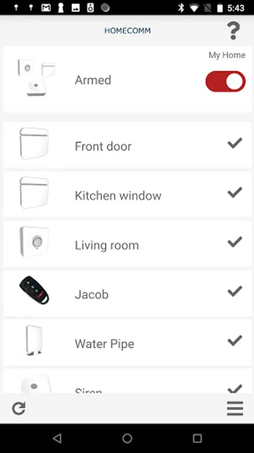 This app controls your HomeComm burglar alarm system, home safety products, and building monitoring products.
