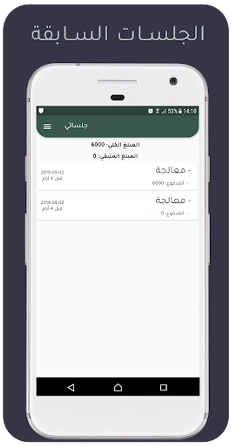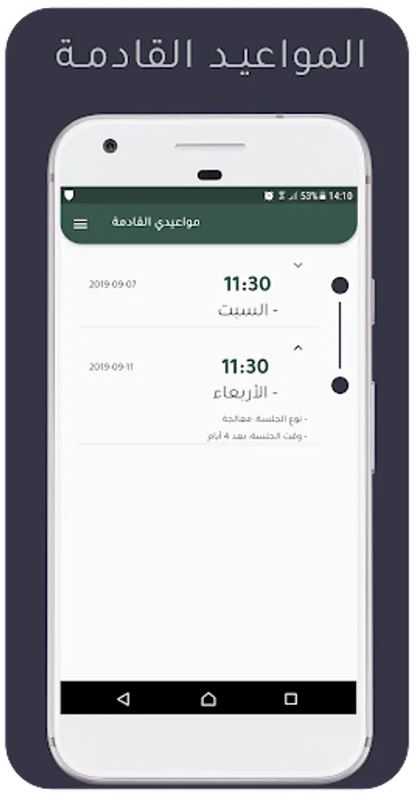 يمكنه من رؤية المواعيد القادمة بالإضافة للحسابات والجلسات الماضية.