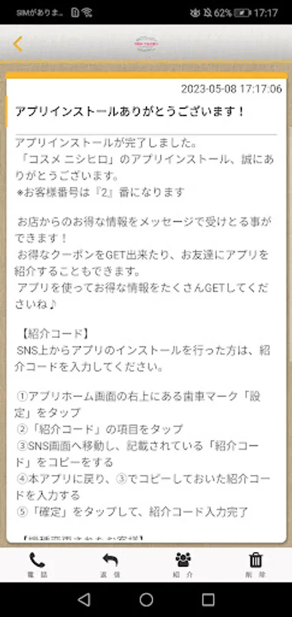 Also, as the message arrives from the store, you can check the latest information at any time.