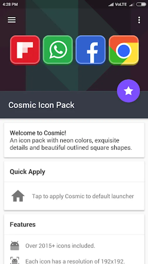 Welcome to Cosmic, an Icon Pack with Neon Colors, Exquisite Details and beautifully outlined Square Shapes. Designed with precision, these icons will make your Android home screen simply pop out.