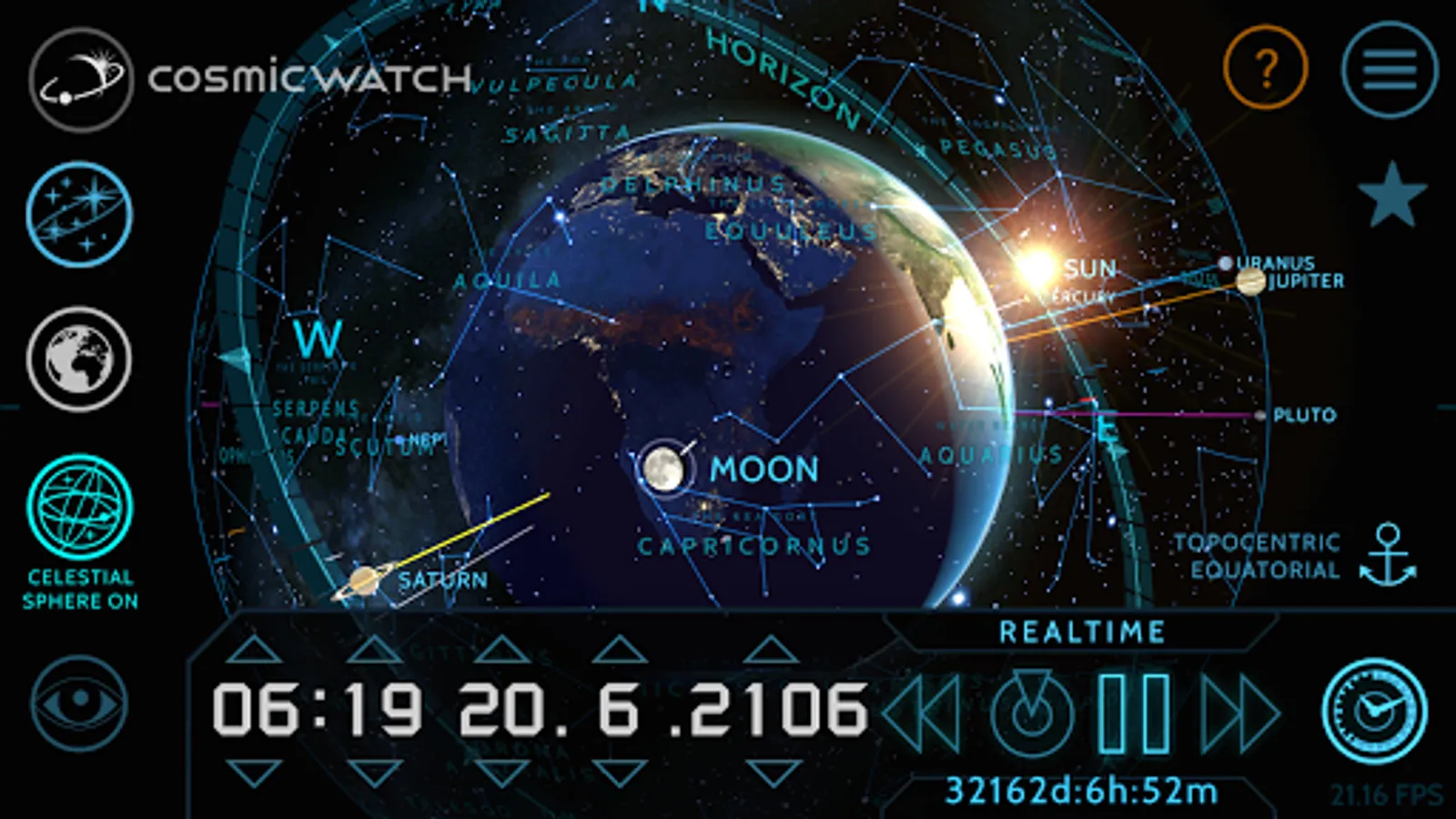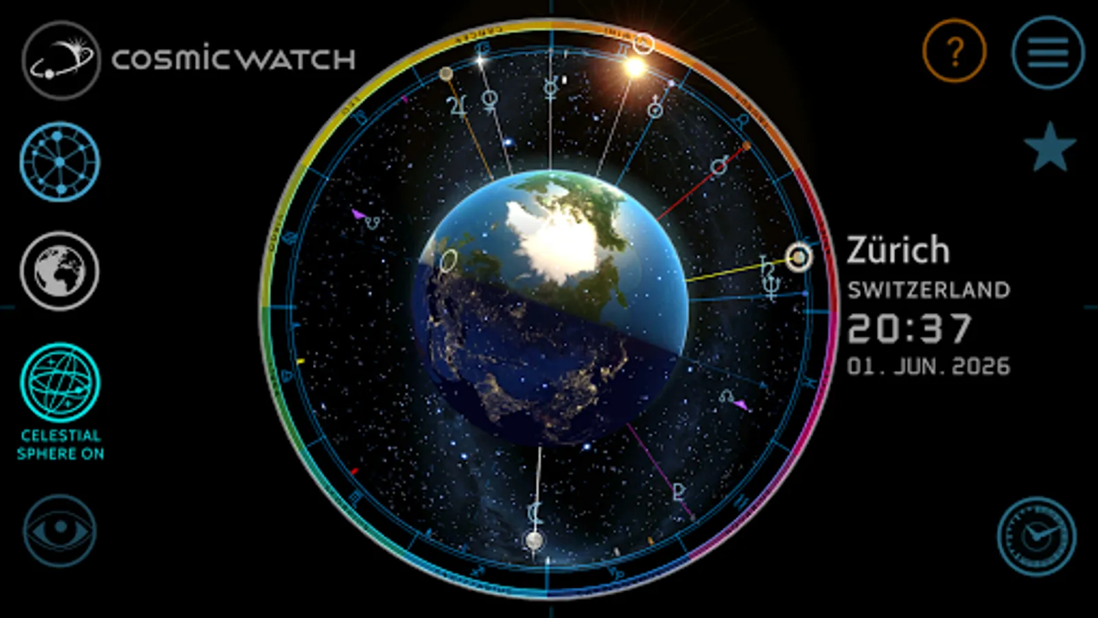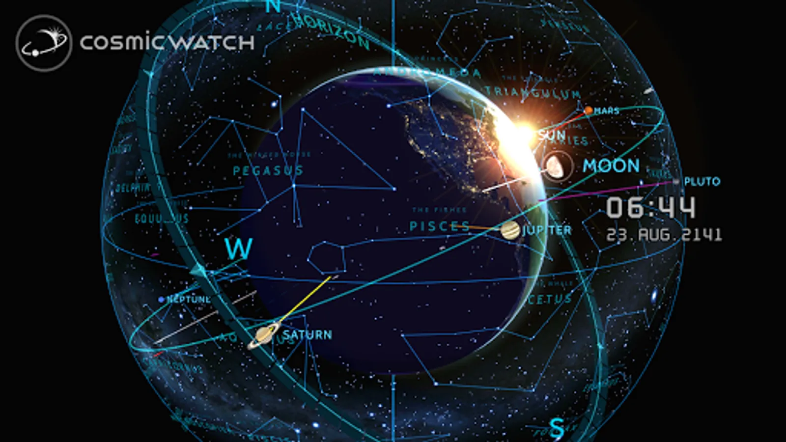 The Cosmic Watch is a 3D planetarium, an AR sky guide and a clock with stunning graphics and visual effects.