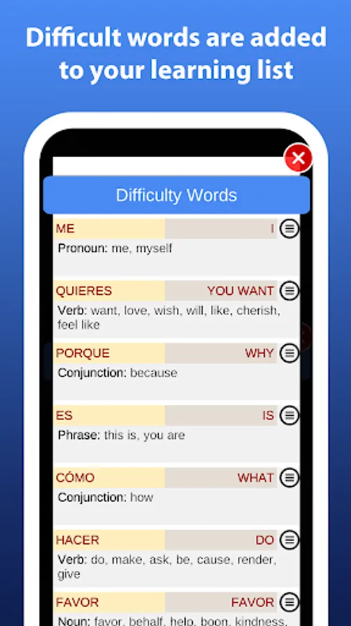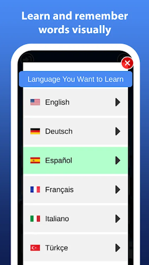 Designed with cutting-edge technologies and aiming for the fastest learning using your visual memory, FoWo helps you memorize words in Spanish, French, Italian, German, Turkish, and English.