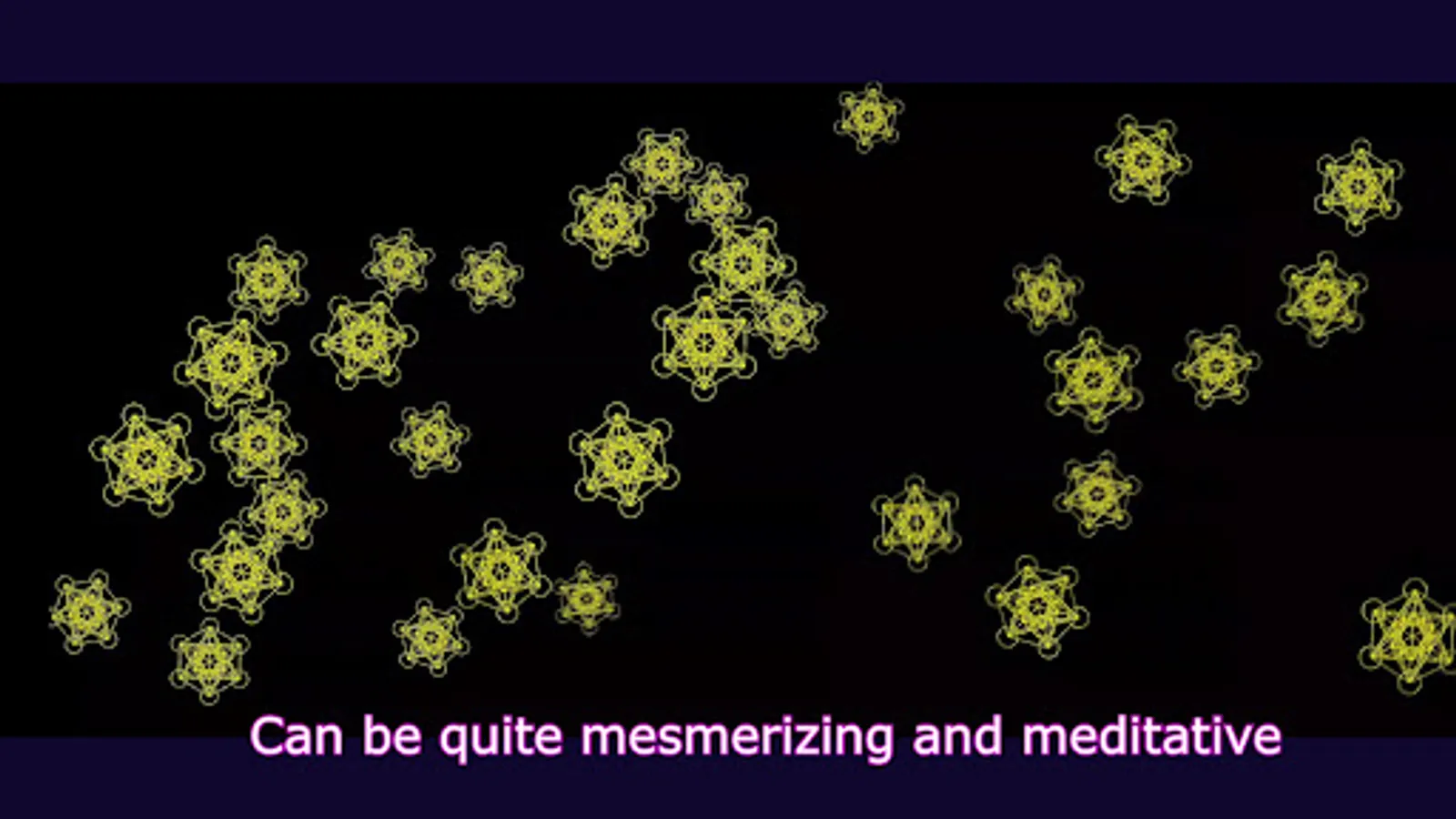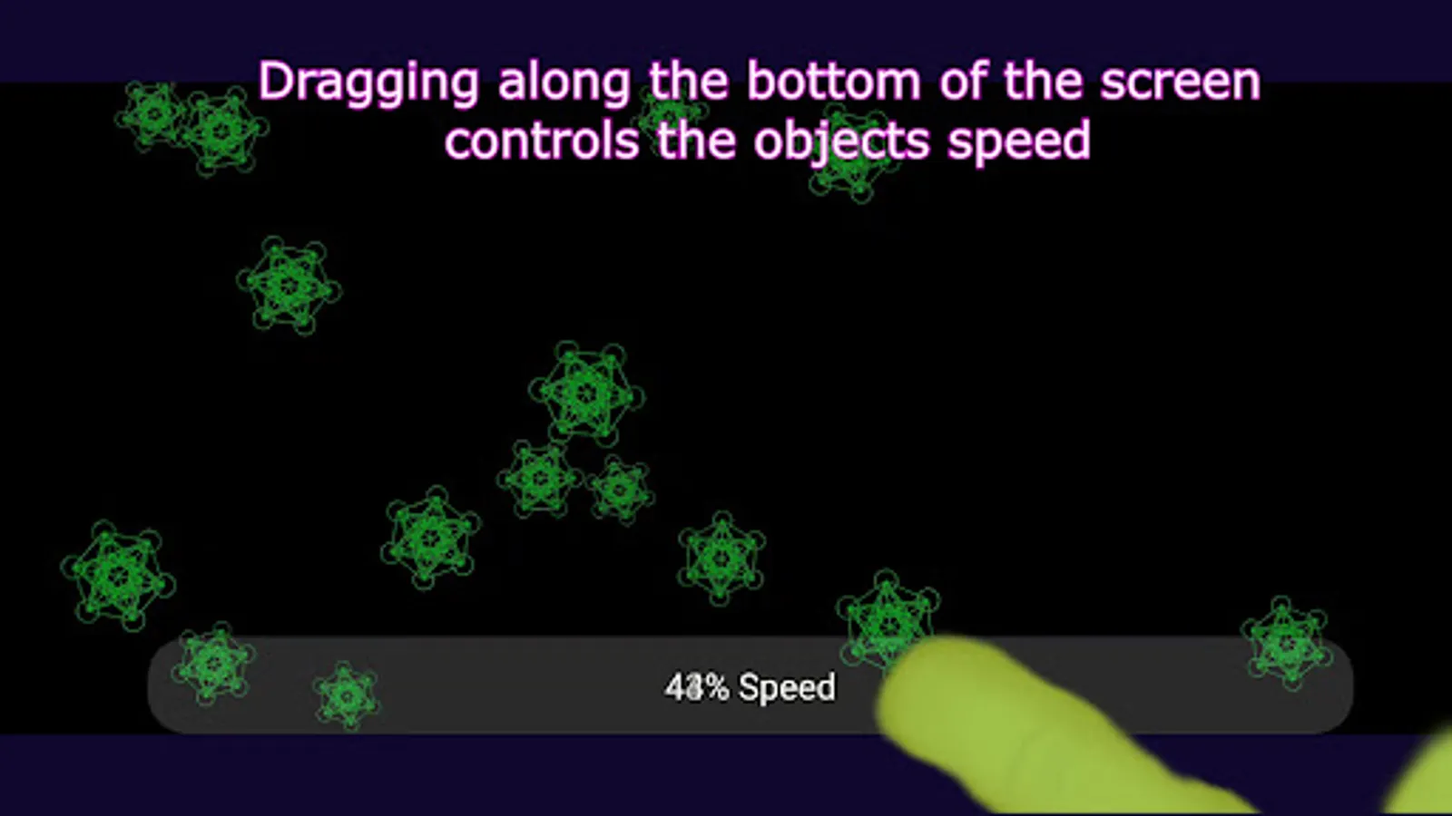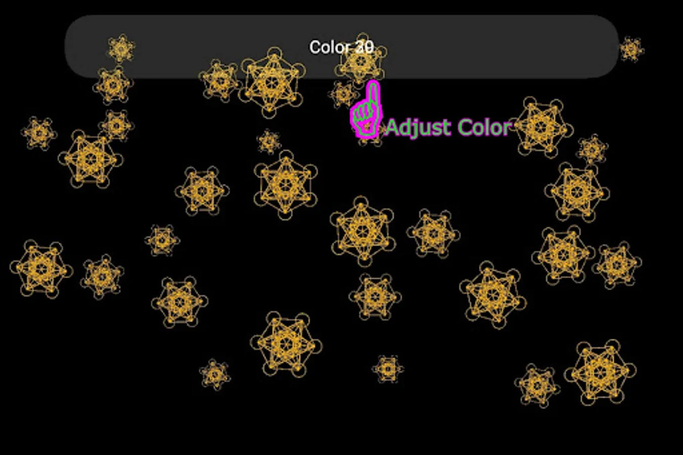 This is a fidget app. Created in southern Humboldt county California. There is no score to attain, and zero challenge to it. This app is about fidgeting around with the physics of Metatron's Cubes in motion. Tapping “Start” brings you to a black screen. Continuous tapping on screen with 2 fingers sends up to 100 Metatron's Cubes of varying size into motion. Upon collision they begin to spin. The force of the collisions with each other or boundaries determines the direction and speed the Metatron's Cubes move and spin. Sliding a finger along the top of the screen changes the color of the Metatron's Cubes. Sliding a finger along the left side of the screen changes the brightness. Changing the speed by sliding a finger along the bottom of the screen, produces a myriad of effects. A 1 finger flick/swipe of an object adds to the chaos. A short flick/swipe has less power than a long flick/swipe. Tap an object to stop it. A flicked or tapped object transfer its energy on collision; whether it is at rest or in motion. These Metatron's Cube objects follow Newton's third law of motion. "Objects in motion, tend to stay in motion and objects at rest, tend to stay at rest; unless acted upon by another force". Tapping with 3 fingers resets everything and returns to the start screen. I welcome all comments and suggestions (apps@cosmicgoo.com).