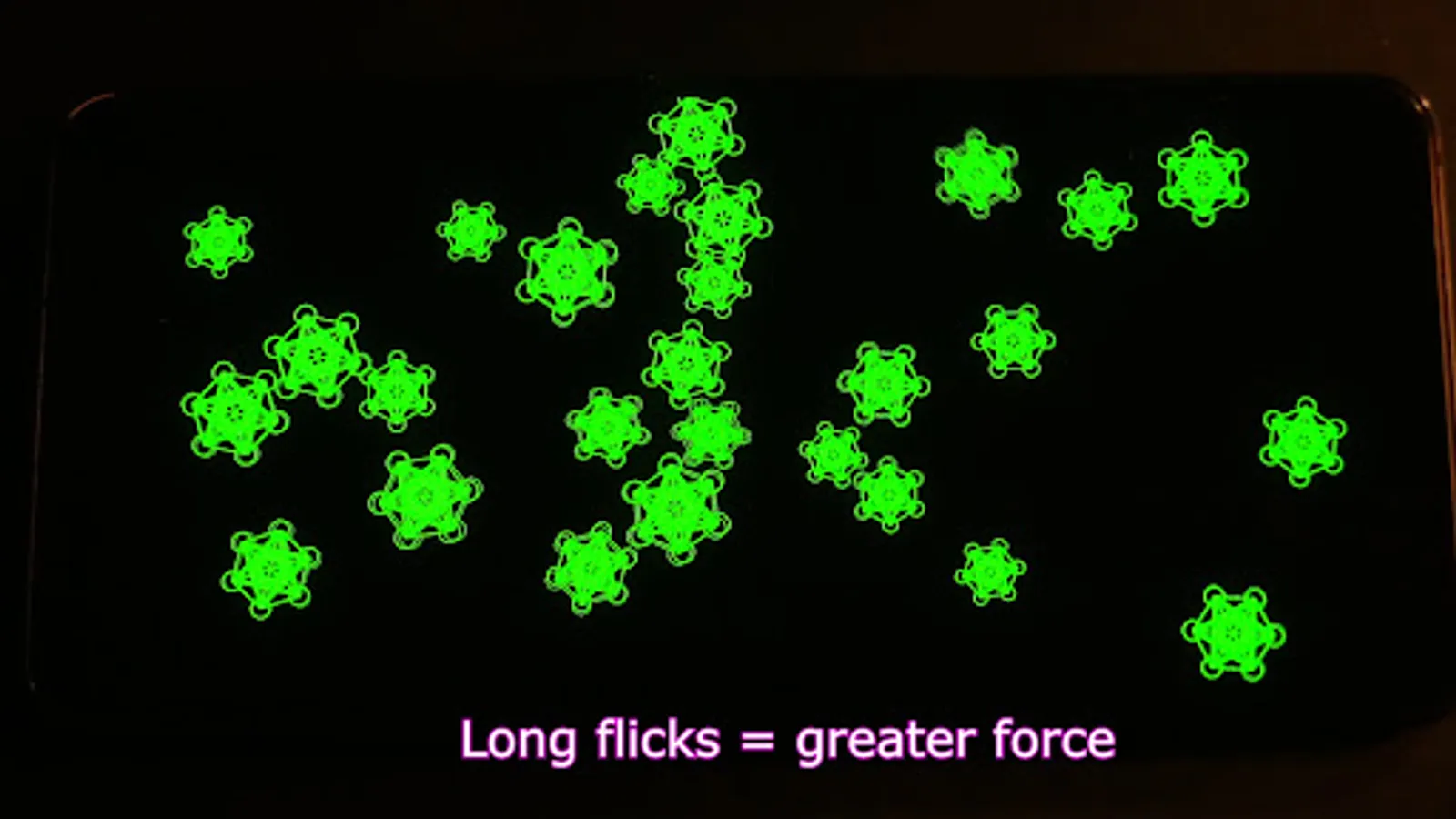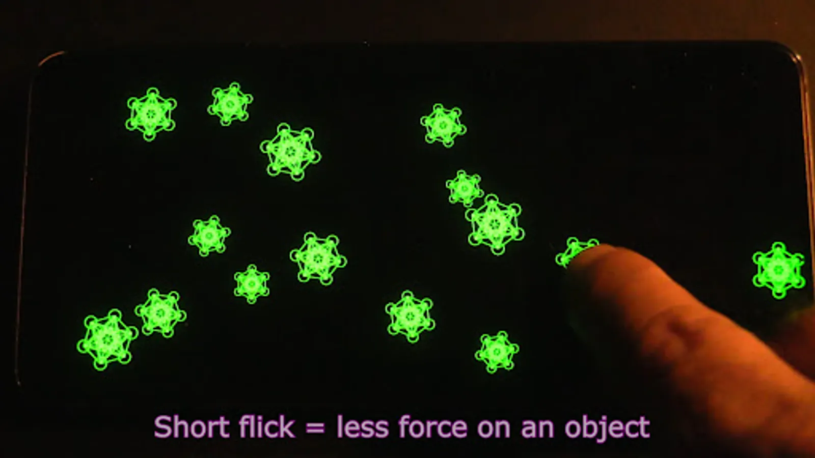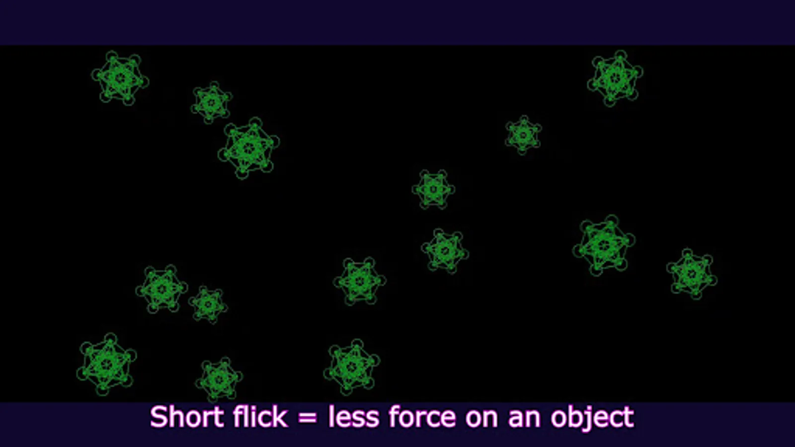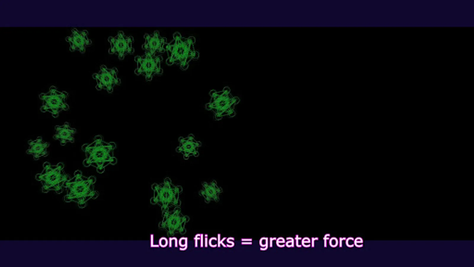 This is a fidget app. Created in southern Humboldt county California. There is no score to attain, and zero challenge to it. This app is about fidgeting around with the physics of Metatron's Cubes in motion. Tapping “Start” brings you to a black screen. Continuous tapping on screen with 2 fingers sends up to 100 Metatron's Cubes of varying size into motion. Upon collision they begin to spin. The force of the collisions with each other or boundaries determines the direction and speed the Metatron's Cubes move and spin. Sliding a finger along the top of the screen changes the color of the Metatron's Cubes. Sliding a finger along the left side of the screen changes the brightness. Changing the speed by sliding a finger along the bottom of the screen, produces a myriad of effects. A 1 finger flick/swipe of an object adds to the chaos. A short flick/swipe has less power than a long flick/swipe. Tap an object to stop it. A flicked or tapped object transfer its energy on collision; whether it is at rest or in motion. These Metatron's Cube objects follow Newton's third law of motion. "Objects in motion, tend to stay in motion and objects at rest, tend to stay at rest; unless acted upon by another force". Tapping with 3 fingers resets everything and returns to the start screen. I welcome all comments and suggestions (apps@cosmicgoo.com).