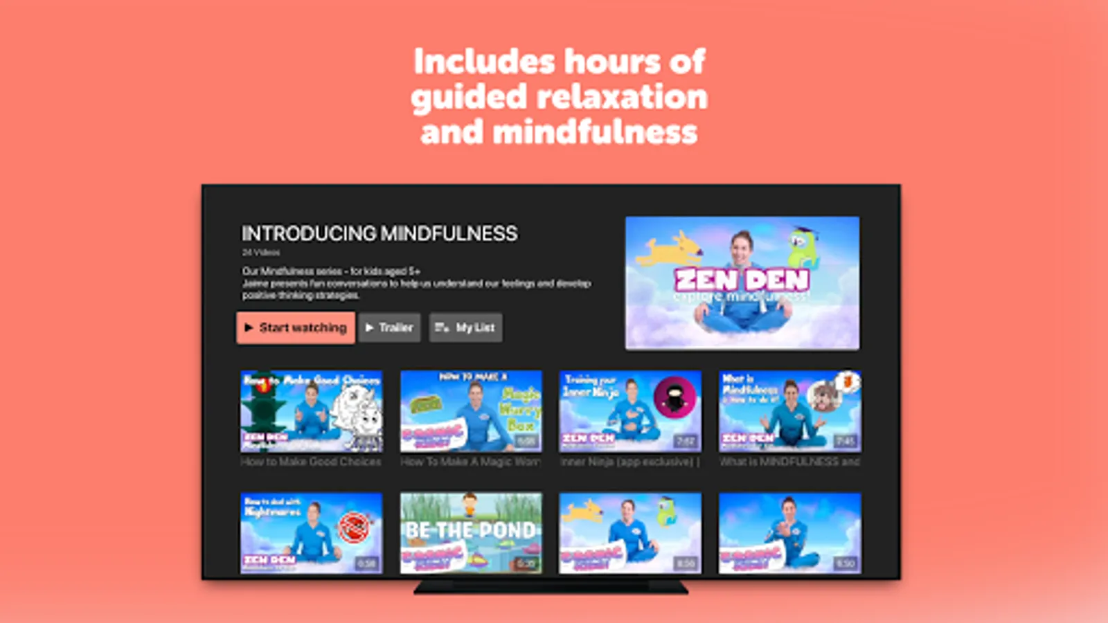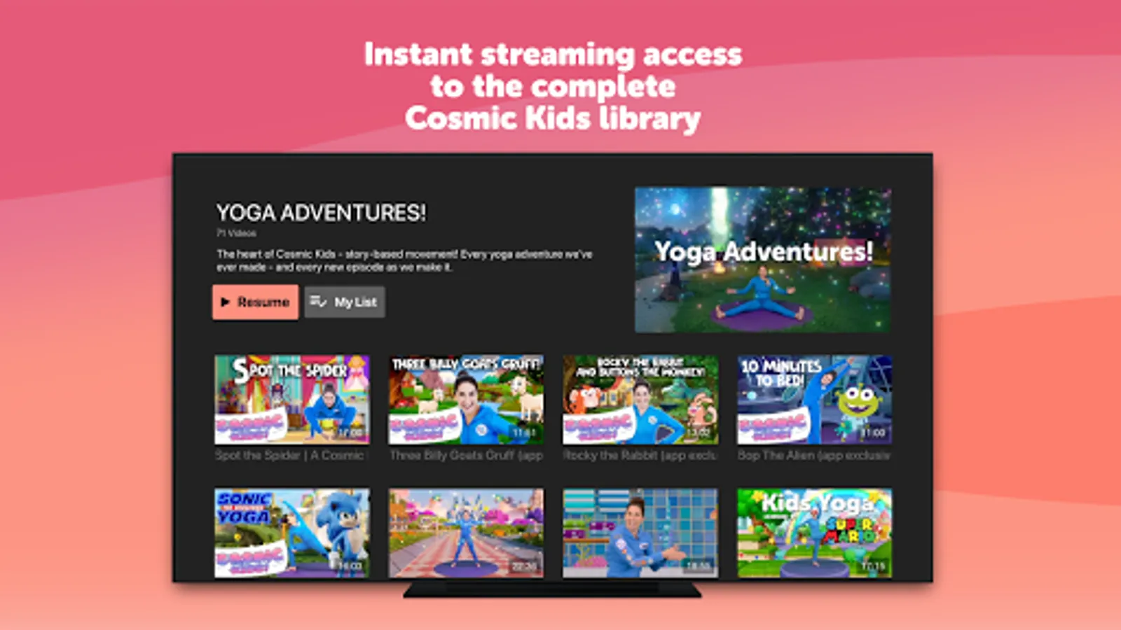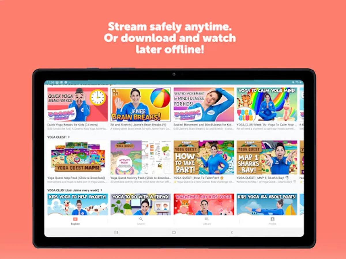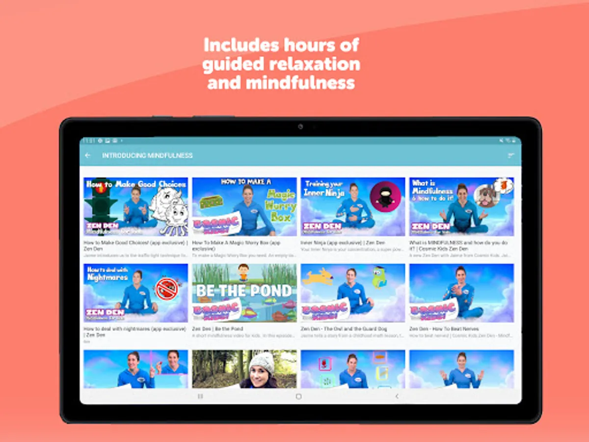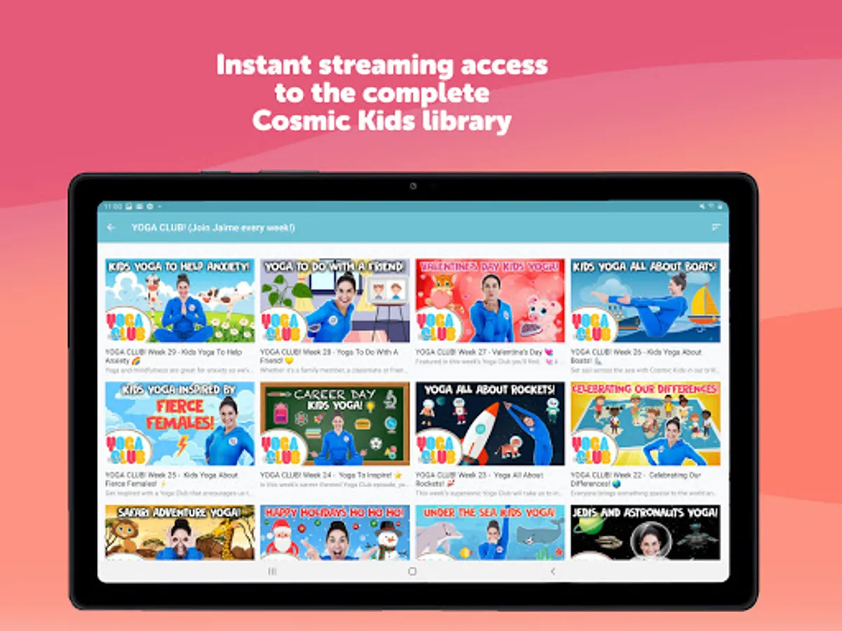 Now with 50+ yoga adventures including the Frozen, Star Wars, Minecraft and Moana specials, plus 17 Zen Den mindfulness sessions, 14 Peace Out guided relaxations as well as Yoga Pose Universe clips, stories and songs. Popular in schools and homes all over the world, this is healthy screen time that kids simply love. Includes every Cosmic Kids yoga and mindfulness video in a safe space, with no commercials or links. Stream our entire library - and get every new video first.