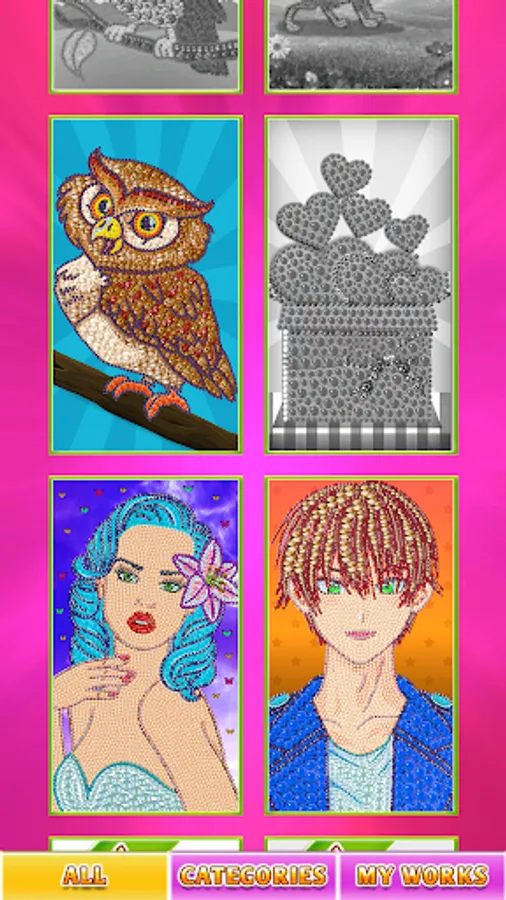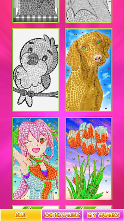 Diamond painting number coloring relaxing app features hundreds of diamond drawings, beautiful pictures, and diamond pixel arts that you can color.