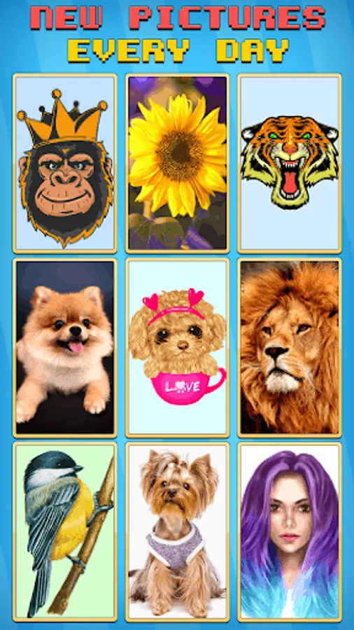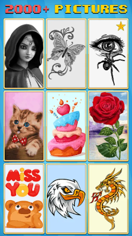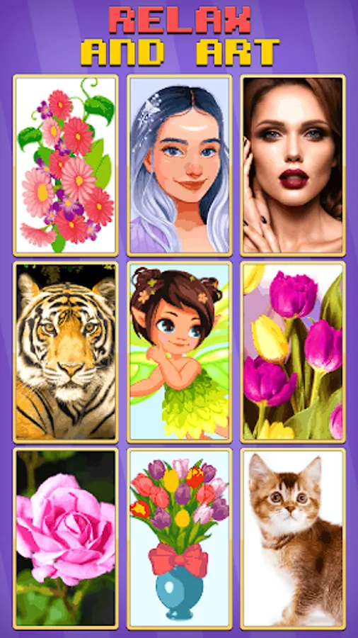 Inside of the our colouring game you will find beautiful pictures like flowers π·, animals π», birdsπ¦ and food π², landscape, manga, people πΈπ¨, fantasy characters like fairies, unicorns, dragons - which suit for all. Paint by number offer a wide variety of amazing pixel pictures. In our coloring application you will find images for every taste.