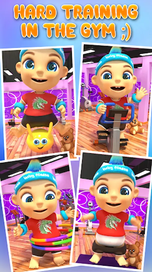 The talking child also cares about his physical condition - watch the whole series of adventures of a talking baby at the gym. He trains hard on a bicycle, tries to lift a bar. And how cool the talking baby trains with hula hoop. And that sometimes some equipment does not work as it should ;) We guarantee a lot of fun watching the adventures of a talking baby boy in the gym J.
