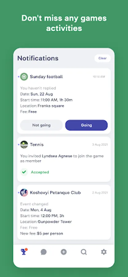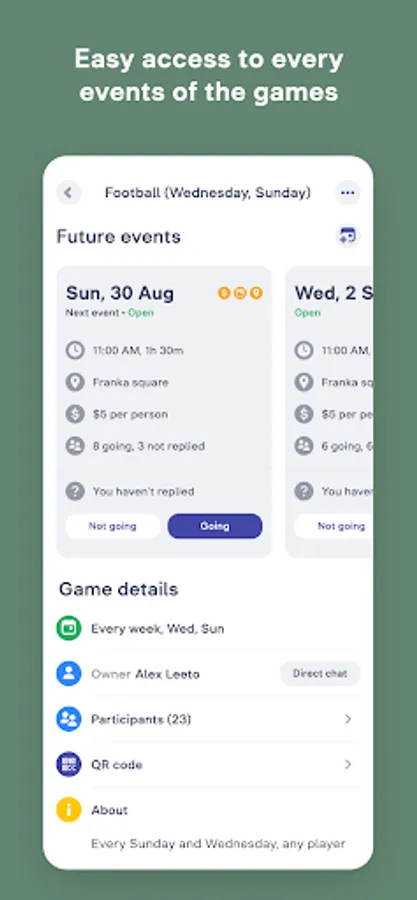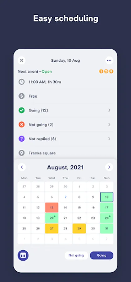 - See quickly events status update (e.g. number of people going and not going, etc.).