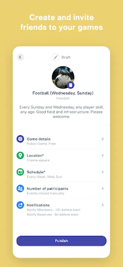 - Invite friends to join your games or make them public to allow anybody to find them.