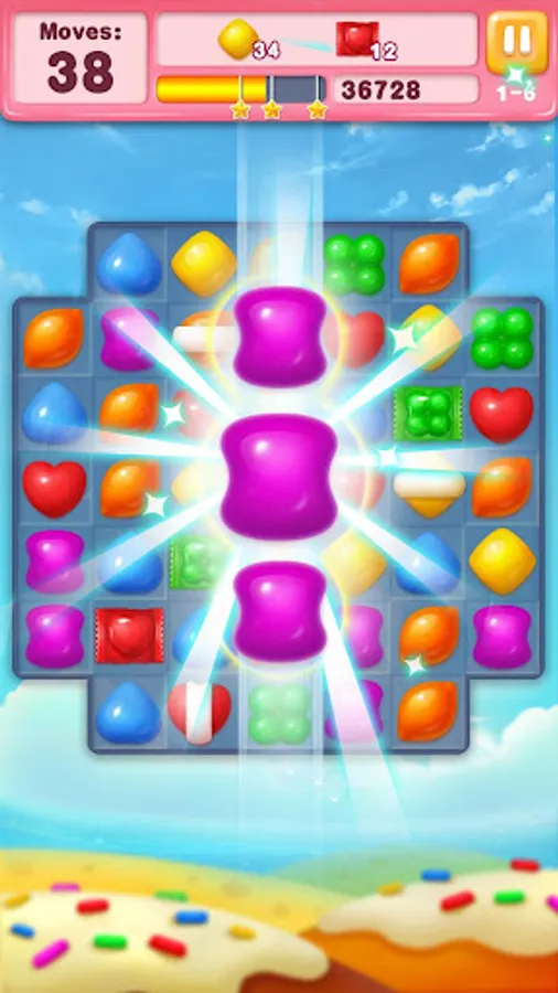- Collect required number of candies to complete level targets