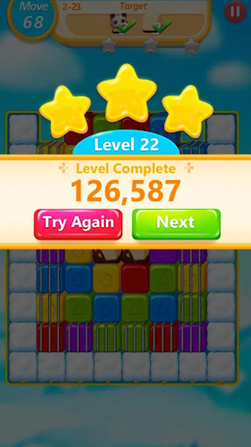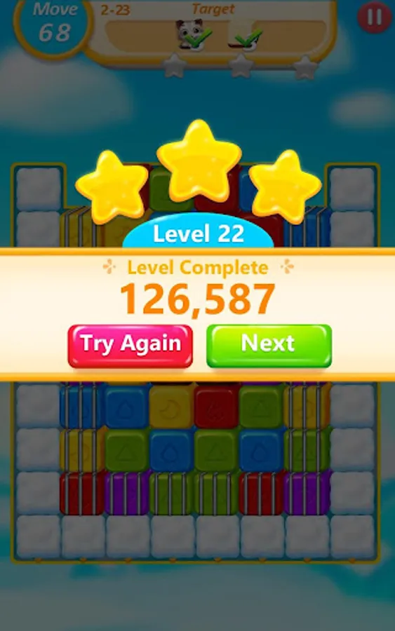 - Achieve required score to pass levels, no time limit