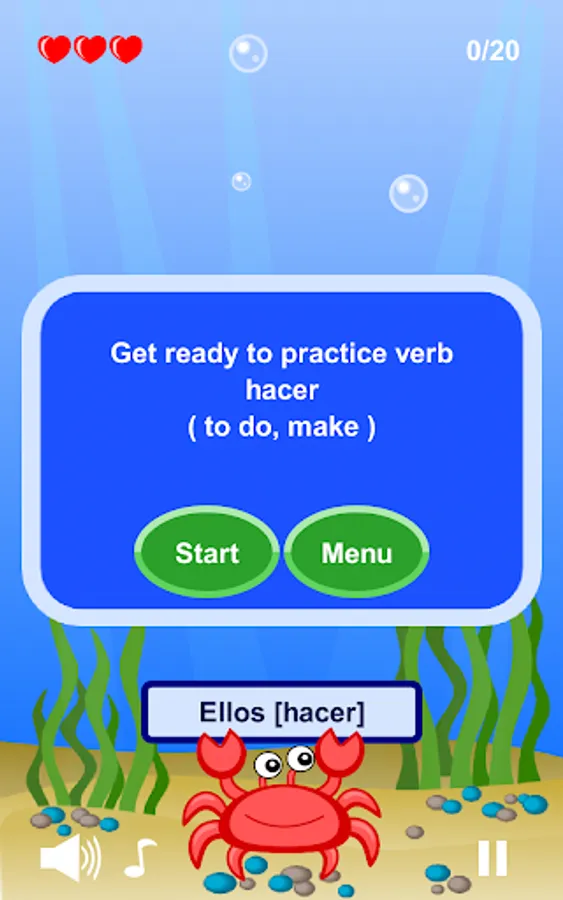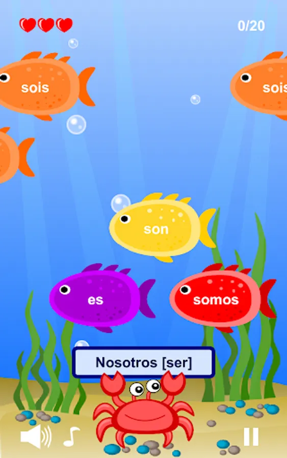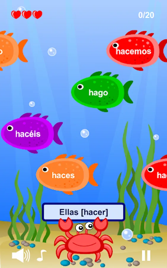 The rules are simple: just catch a fish with the correct conjugation for the shown verb and prononun and get score points.